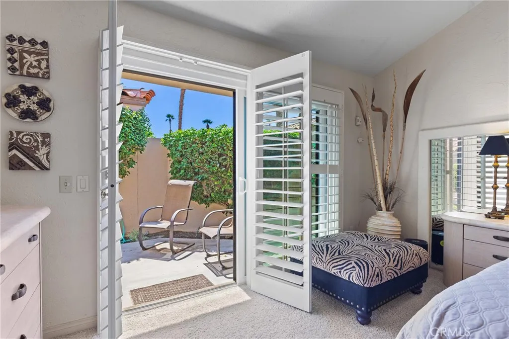 From the moment youre greeted with a smile at the attended gate, youll understand why its called Palm Valley. With thousands of palm trees, two championship golf courses, and an expansive clubhouse, this community offers true resort-style living. Enjoy the pools, restaurant, bar, banquet facilities, salon, gym, pickleball, and a world-class tennis facilitycomplete with golf and tennis pro shops. Socialize, join a league, or attend one of the many community events. This beautifully updated three-bedroom, three-bath Sycamore floorplan offers over 1,900 sq. ft. of luxury living on Wisteria.Located on the 14th hole of the "Challenge " course. Step inside and let your Sonos set the mood as youre welcomed into a tasteful, "Safari Vibe" -inspired smart home. Designed for both relaxation and entertaining, the open floor plan features a spacious family room with a cozy fireplace, a huge kitchen island, and a wraparound wet bar with seating for six and a wine refrigerator. The primary suite includes a spa-like bathroom, generous closet space, and a private courtyard. A secondary bedroom is en suite, while the third bedroom is currently being used as a den/media room. Recent upgrades include newer windows and sliding doors, outdoor counters with built-in barbecue, remote retractable awning , radiant heater , a misting system, and more. Tile and carpet flooring flow throughout, with direct access to a large patio overlooking the golf course and incredible sunsets with mountain views . Perfect as a primary home, vacation getaway, or income property, this residence offers the ultimate Pa