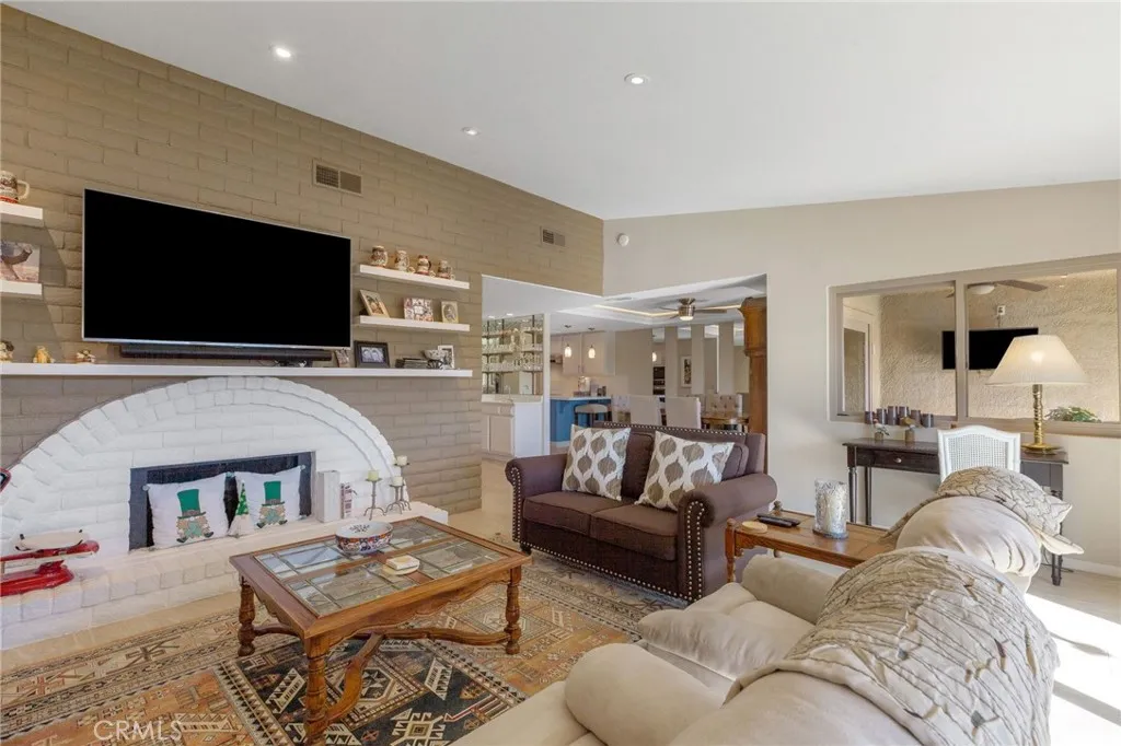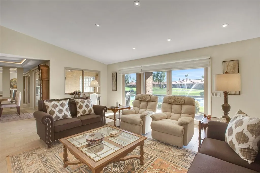 Experience elevated desert living in this beautifully updated condo within the sought-after gated community of Chaparral Country Club, centrally located in Palm Desert. This light-filled home features a stylish kitchen with quartz countertops, designed for both everyday living and entertaining, along with a dramatic vaulted living room with recessed lighting and a statement gas fireplace. Step outside to a covered patio that captures breathtaking views of the golf course, including a beautiful view of the first hole, with mountains rising in the distance. The patio is ideal for outdoor dining and relaxation, complete with sun shades for added comfort. An outdoor atrium provides additional open-air space, perfect for enjoying the desert climate or creating a private garden retreat. The primary suite offers a comfortable retreat with a walk-in closet and an en-suite bath, while the guest bedroom enjoys views of the atrium and generous storage. Additional features include tile flooring throughout the main living areas, ceiling fans, an indoor laundry area, and a two-car garage. Located just a short stroll to one of the communitys pools and spas, residents also enjoy access to multiple pools throughout the neighborhood, along with pickleball and tennis courts, a fitness center, clubhouse, restaurant, and an active social calendar. The beautifully maintained grounds surround an 18-hole executive golf course, creating a true resort-style setting. HOA amenities include cable, internet, exterior maintenance, roof coverage, landscaping, trash, and security with 24-hour gated access