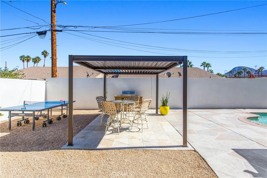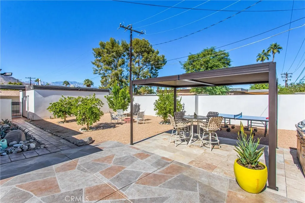 Modern Desert Home- Stylish, Smart & Steps from El Paseo. Welcome to your fully remodeled modern oasis in the heart of South Palm Desert, just blocks from the shops and dining of El Paseo. This thoughtfully updated 3 bedroom and 2 bath home blends 70's retro charm, offering a bright, open layout that flows seamlessly into a vaulted living area with a striking fireplace and custom dry bar. The designer kitchen features premium appliances and sleek finishes, while the bathrooms showcase terrazzo tile. Step outside to your private backyard retreat, complete with a pebble-tech pool, BBQ, pergola, fire pit, and fresh desert landscaping. Additional highlights include paid solar, smart-home upgrades, and curated designer touches throughout. Whether you're seeking a weekend getaway or an income property, this turnkey gem delivers style, comfort, and location in perfect balance.