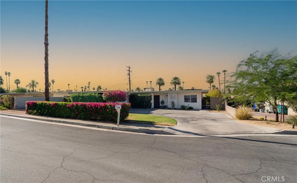 Welcome to this timeless 3-bedroom, 2-bath mid-century modern gem, nestled on an expansive 9,000+ sq ft lot in a quiet cul-de-sac. This well-loved home radiates curb appeal with lush, mature landscaping and classic architectural lines that celebrate its mid-century roots. Step inside to discover light-filled living spaces that blend vintage character with modern updates. The open layout flows effortlessly from the inviting living room to a delightful kitchen and dining area... ideal for both relaxing and entertaining. Outdoors, your private backyard oasis awaits. Dive into the sparkling pool, bask in the sun, or unwind under the shade, all surrounded by vibrant gardens and ample space for lounging, playing, or hosting gatherings. A detached storage shed offers extra convenience for your hobbies or gear. Whether you're a design enthusiast or simply looking for a charming home with room to grow, this property offers endless potential in a peaceful, sought-after setting. Tucked away in a serene neighborhood yet just minutes from upscale shopping and dining on El Paseo, scenic hiking trails, and everything Palm Desert has to offerthis home delivers the ideal desert lifestyle. Mid-century magic, modern ease, and unbeatable locationcome experience it for yourself. Dont miss your chance to own a slice of mid-century magic!