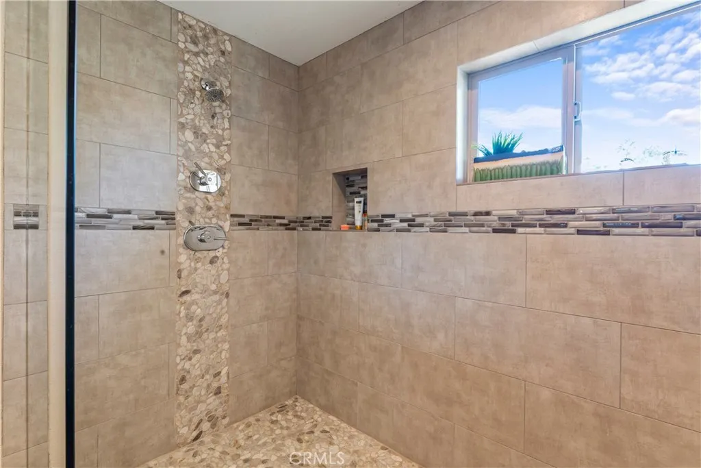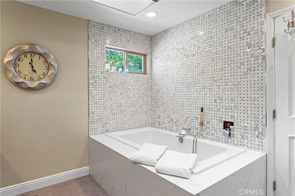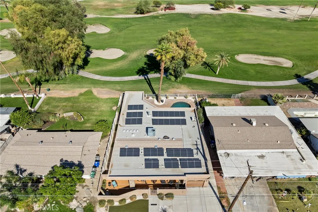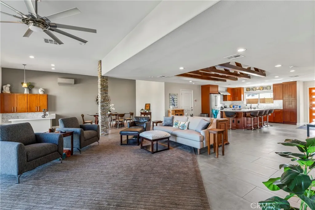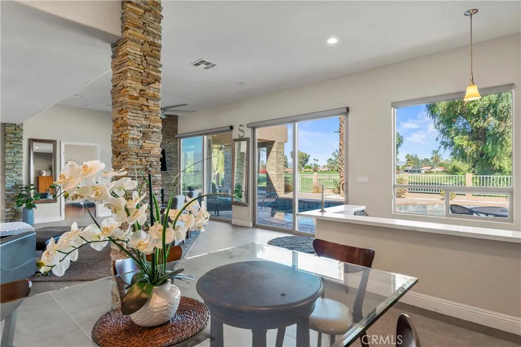 Immaculate turnkey home LOCATED ON THE GOLF COURSE in Palm Desert Country Club. Exquisitely remodeled in 2018 into a highly updated desert modern stucco architectural showpiece with stacked stone accents inside and out. Step into the expansive interior from a walled front deck patio area that ensures privacy from the street. Very flexible floor plan featuring a centrally placed Kitchen & expansive Great Room with large Dining Area and step-down Wet Bar all spaciously open to one another. Living area is filled with light from a very unique, large central open beam & skylight ceiling recess. Incredible 180 degree golf course & mountain views from expansive sliding glass doors & windows opening from the Great Room & Primary Bedroom onto the shaded north-facing showcase rear yard. The pebble tech POOL & SPA surrounded by ample stamped concrete decking, a covered patio with crushed glass fire feature and poolside al fresco dining area create the perfect rear yard haven! Both spacious Bedrooms are en suite with their own private Bath. Entertain guest around the huge island in the chef's Kitchen generously outfitted with ample custom cabinetry, 48" stainless steel dual fuel Thermador range with 6 burners, a grill and 2 ovens, Viking stainless steel interior dishwasher, Viking microwave, Bosch refrigerator/freezer, 2 sinks and stone countertops. Primary Bedroom Suite features a large en suite bath with huge walk-in shower and a couple's soaking tub surrounded by custom tile, dual basins recessed into stone countertops and unique skylight and open beam ceiling. Bedroom Suite 2 opens
