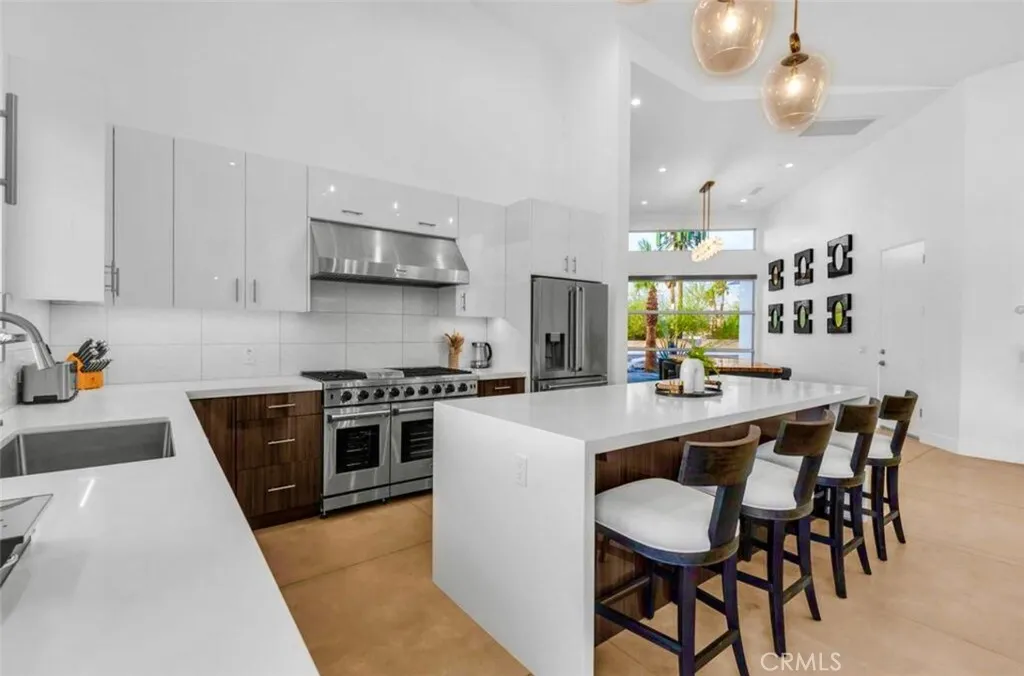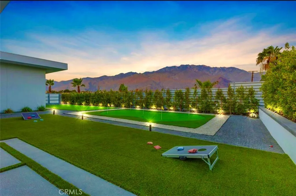 Discover Miracle, a breathtaking custom-built home nestled in Desert Park Estates, Palm Springs. This property boasts an oversized corner lot with stunning mountain views, seamlessly blending indoor and outdoor living. Soaring 18-foot ceilings add to the spacious feel of the home, while three grand master suites, each with its own washer and dryer, provide ultimate convenience. The interior, designed by Megan of Citizen Houses, features custom-tailored furniture and a unique hand-designed plaster painting by the spectacular designer Angelo Buonvincino on the living rooms central wall. Step outside to your private resort-like oasis, featuring a professionally designed outdoor living space with a modern BBQ bar, a custom-built modern shank-in fire pit by a serene water feature, and a putting green. The landscape also includes two playgrounds, making it perfect for entertainment. Experience the latest technology with an oversized smart patio that opens to 180 degrees and automatically closes when it rains. Every piece of outdoor furniture has been meticulously chosen to complement the luxurious ambiance. Miracle offers an unparalleled living experience in Palm Springs. The upscale retreat is just a stone's throw away from restaurants, golf courses, festivals, and Joshua Tree National Park. All the furniture is included. Perfect for Airbnb. Str licenses available.