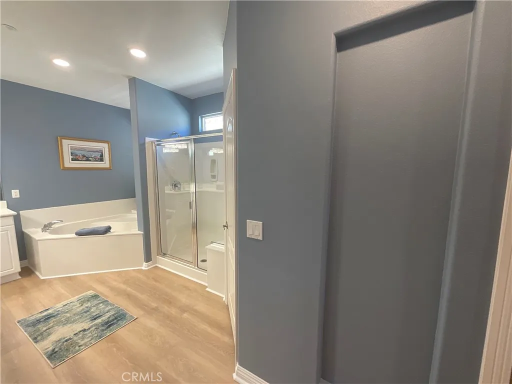 Welcome to Four Seasons, an exclusive 55+ gated enclave in Palm Springs. This elegant 3-bedroom, 2-bathroom floor plan offers 2,102 square feet of interior space designed for comfort, ease, and enjoyment. High ceilings, custom white Plantation shutters and an open floor plan create a light and airy ambiance. Granite counter tops, stainless steel appliances, a center island and loads of storage accent the open kitchen. The large great room offers a built-in gas fireplace and double doors leading to the private rear yard with mountain views and no homes behind. New updates include: stainless steel kitchen appliance package; Life proof luxury vinyl plank flooring throughout the house; energy efficient ceiling fans; upper cabinets in the laundry room; low flow toilets, vanity lights and high efficient fans in both bathrooms; closet systems in the primary and front bedrooms; LED lights throughout the interior; coach lights on the exterior; crystal glass chandelier in the dining room; vertical blinds on both back French doors and kitchen window; custom drapes in the primary, living room and kitchen; HP garage door opener; 4 coat epoxy coating and pergola (with LED lights and ceiling fan) on the back patio; repainted entire interior and exterior; roof cement tiles inspected and all cracked or chipped tiles replaced. Yearly HVAC maintenance contract with Desert Air transfers to new owner. Four Seasons offers access to a variety of amenities that include 2 community pools, spas, aerobics room, game room, gym, basketball court, pickle ball courts, tennis courts, outdoor BBQs, game r