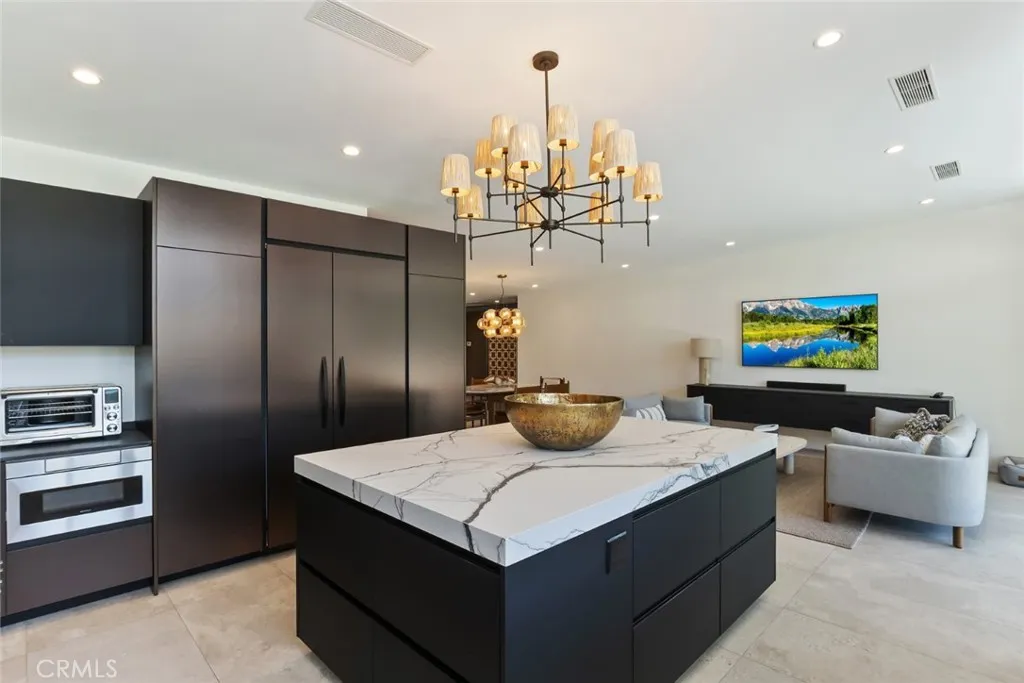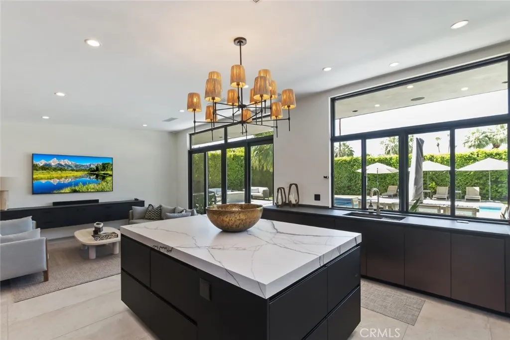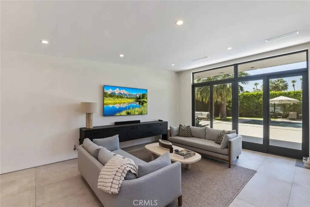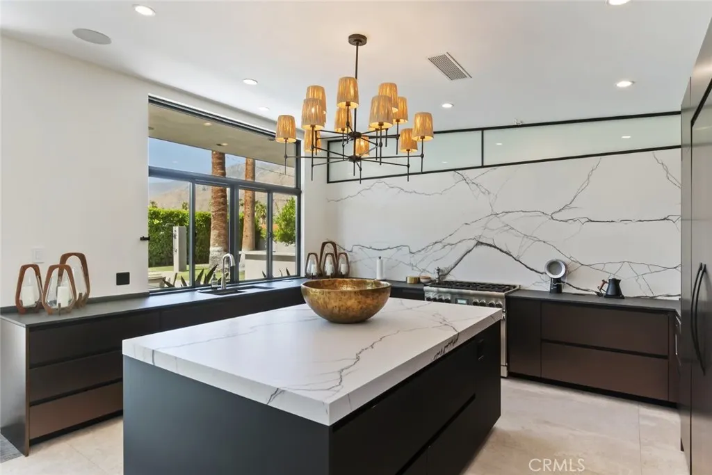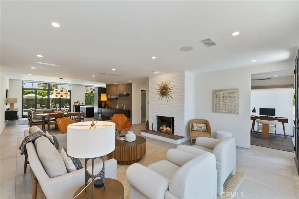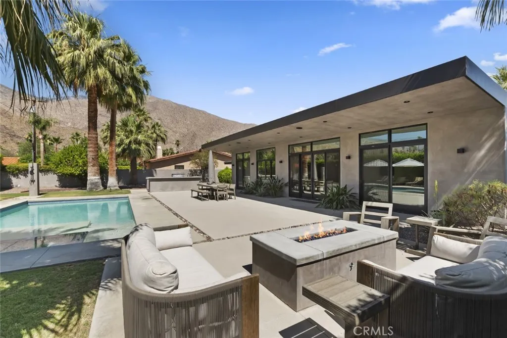 This stunning Palm Springs retreat is a masterful blend of high design and relaxed sophistication. Thoughtfully reimagined, the home has undergone transformational updates creating open-concept living spaces perfect for a modern lifestyle. Wide tile floors flow through the spacious living and dining rooms, featuring a fireplace with brick hearth and a sleek built-in bar. Giant windows and sliding doors provide abundant natural light throughout the day, highlighting the custom window treatments and wall coverings. The gourmet kitchen is a chefs dream, appointed with top-of-the-line Thermador appliances, a large central island, and stunning leathered quartz countertops. Every detail is elevated by an Intelligent Smart Home System that makes luxury effortless. Out of the four en-suite bedrooms, two are primary suites, each featuring views of the mountains and sparkling poola serene backdrop to wake up to every day. The backyard is a true oasis with plenty of spaces to relax in the pool and spa, lounging on the baja shelf, or seated around the built-in firepit. An expansive patio, custom outdoor kitchen, and bocce court add to the entertainment opportunities during warm sunset evenings. An outdoor shower provides further convenience. Enjoy beautiful mountain views and the close proximity to Palm Canyon Drive and all that it has to offerfrom vibrant dining and shopping to art galleries and cultural attractions. Live the Palm Springs lifestyle at its finest in this one-of-a-kind desert sanctuary.