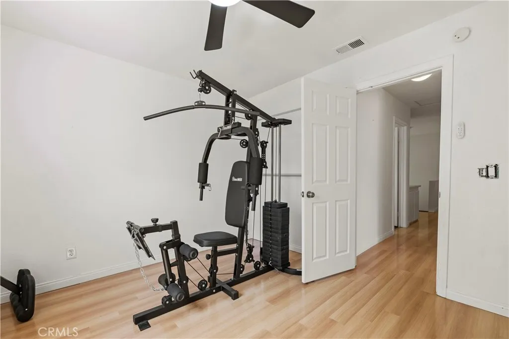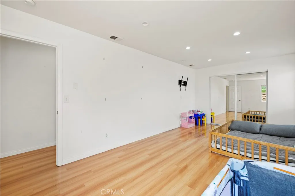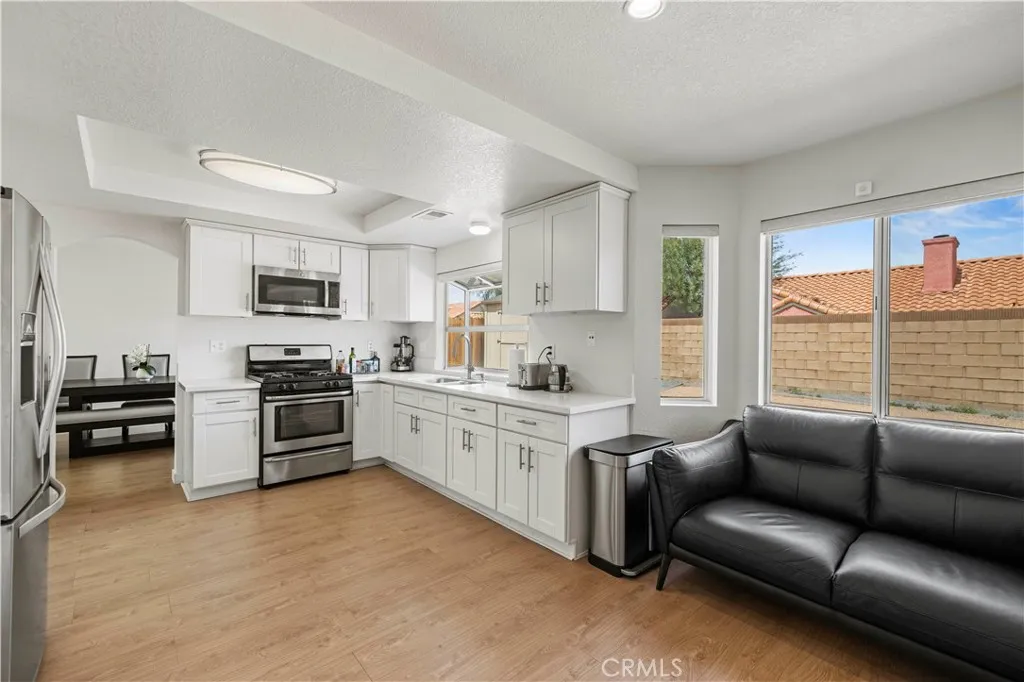 Welcome to this beautiful two-story home that effortlessly blends comfort, style, and functionality. Step inside to discover a spacious layout featuring a convenient downstairs bedroom and full bathroom, perfect for guests or multi-generational living. Upgraded laminate flooring flows seamlessly throughout the home, complemented by an abundance of natural light from the south-facing front, creating a warm and inviting atmosphere. The kitchen is a chefs delight, boasting modern cabinetry and exquisite quartz countertops that provide both durability and elegance. Upstairs, the primary suite is generously sized and includes a walk-in closet and a spa-like en-suite bathroom with upgraded tile and a double sink vanity. The house originally had five-bedrooms, but the previous owner combined two bedrooms into one expansive room, offering a flexible layout. The additional bedrooms are comfortably sized and full of potential. Step outside to a low-maintenance spacious backyard, perfect for eco-conscious living. Enjoy privacy and security with block walls and take advantage of the custom RV access and gateideal for recreational vehicles or extra storage needs. Large backyard storage units provide even more flexibility for the personal items. Located just minutes from the Antelope Valley Mall, local schools, and shopping centers, this home offers both convenience and quality living. Dont miss your chance to make this versatile and beautifully maintained property your own!