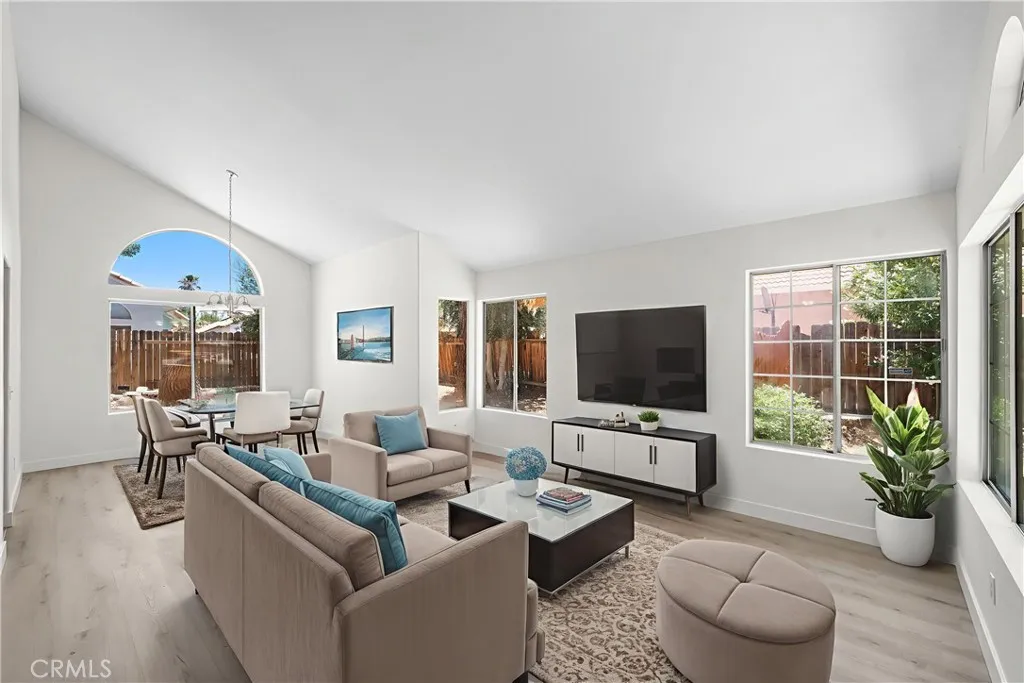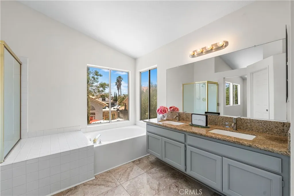 BACK ON THE MARKET! Welcome to this beautifully updated two-story home nestled in a highly convenient neighborhood just off Rancho Vista Blvd! Enjoy unbeatable access to the 14 Freeway and top local attractions including Marie Kerr Park, the Palmdale Amphitheater, Antelope Valley Mall, Cinemark theaters, Restaurant Row, and all major shopping centers. Built in 1990, this 2,112 sq ft home features soaring ceilings and an abundance of natural light throughout. With 4 bedrooms and 4 bathroomsincluding a private downstairs bedroom with its own full baththis home offers a flexible and functional floor plan ideal for multi-generational living or guests. An additional half bath is located on the main level for convenience. Step into the spacious formal living and dining rooms, perfect for entertaining. The updated kitchen boasts granite countertops, large tile flooring, refinished cabinets, stainless steel appliances, and a breakfast bar that opens to the cozy family room with a fireplace. Upstairs, you'll find two additional bedrooms with a shared main bath, along with a generously sized primary suite that features a walk-in closet, double sinks, a walk-in shower, and a separate soaker tub for relaxing. Additional highlights include new vinyl flooring throughout, fresh interior paint, spacious indoor laundry room, 3-car garage, & a private backyard with mature shade trees and patio slabperfect for summer gatherings. This move-in ready home checks all the boxescomfort, location, and value. Don't miss your chance to own a home in one of West Palmdale's most sought-after neighborhoo