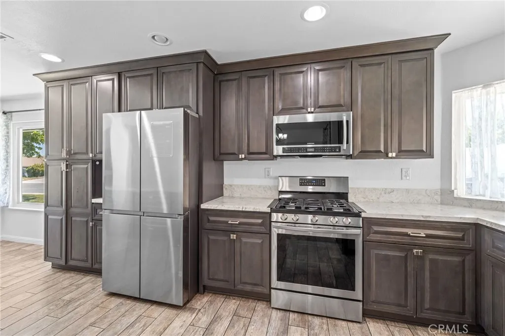 Welcome to this beautifully maintained 4-bedroom, 2-bathroom home offering 1,732 sq ft of living space on a spacious 7,976 sq ft corner lot. This inviting residence features an open-concept layout with abundant natural light, a cozy fireplace, and seamless flow between the living, dining, and kitchen areas, perfect for both everyday living and entertaining. The updated kitchen showcases rich cabinetry, stainless steel appliances, and generous counter space, while both bathrooms have been tastefully remodeled with modern finishes. Durable tile flooring runs throughout, adding both style and functionality. A major highlight of the property is the permitted approximately 400 sq ft ADU, offering incredible flexibility for rental income, guest quarters, or a private home office. Additional features include a tile roof, 3- car attached garage, and fully paid-off solar panels, providing energy efficiency and long-term savings for the new owner. The well-sized backyard offers plenty of space to relax or entertain, completing this exceptional property.