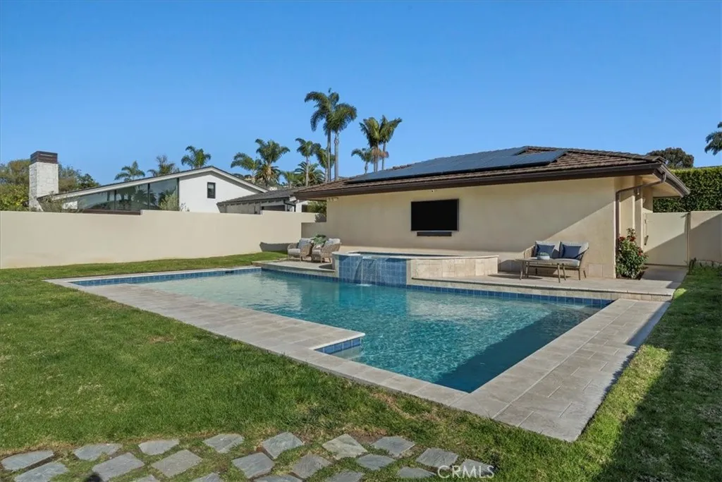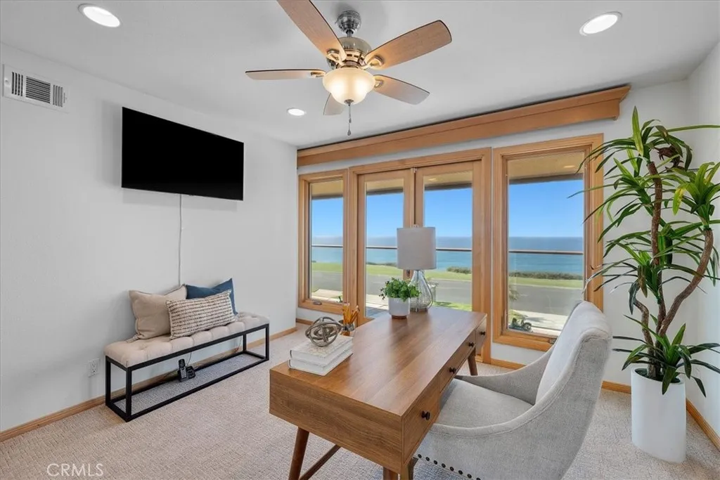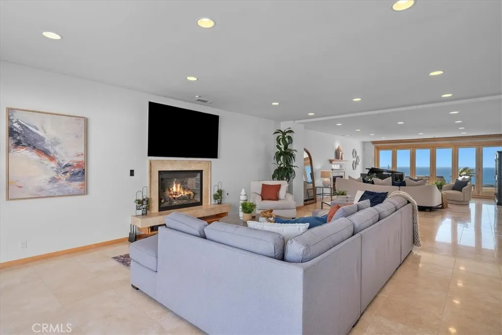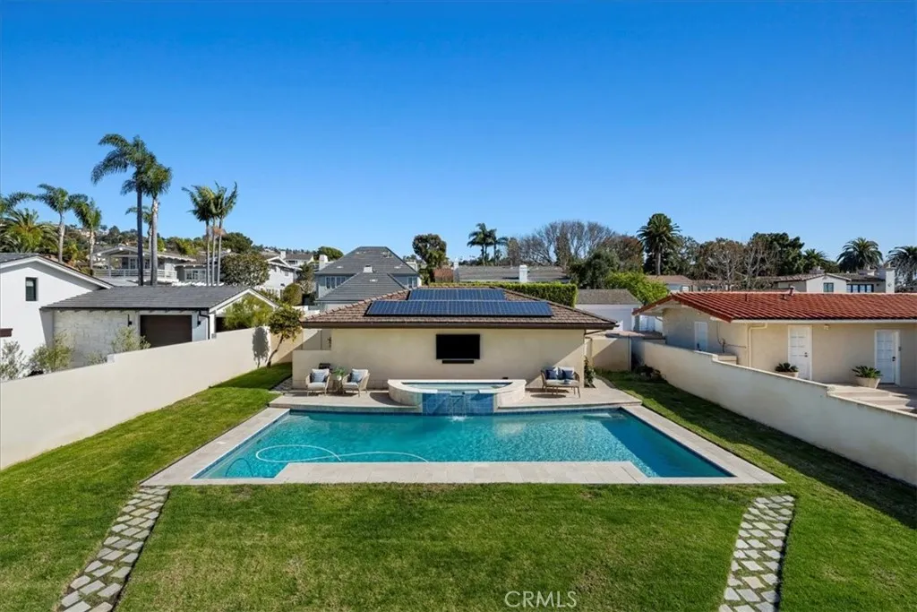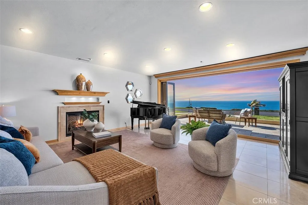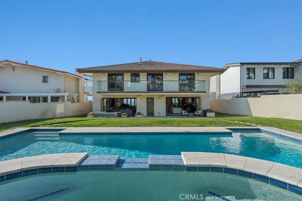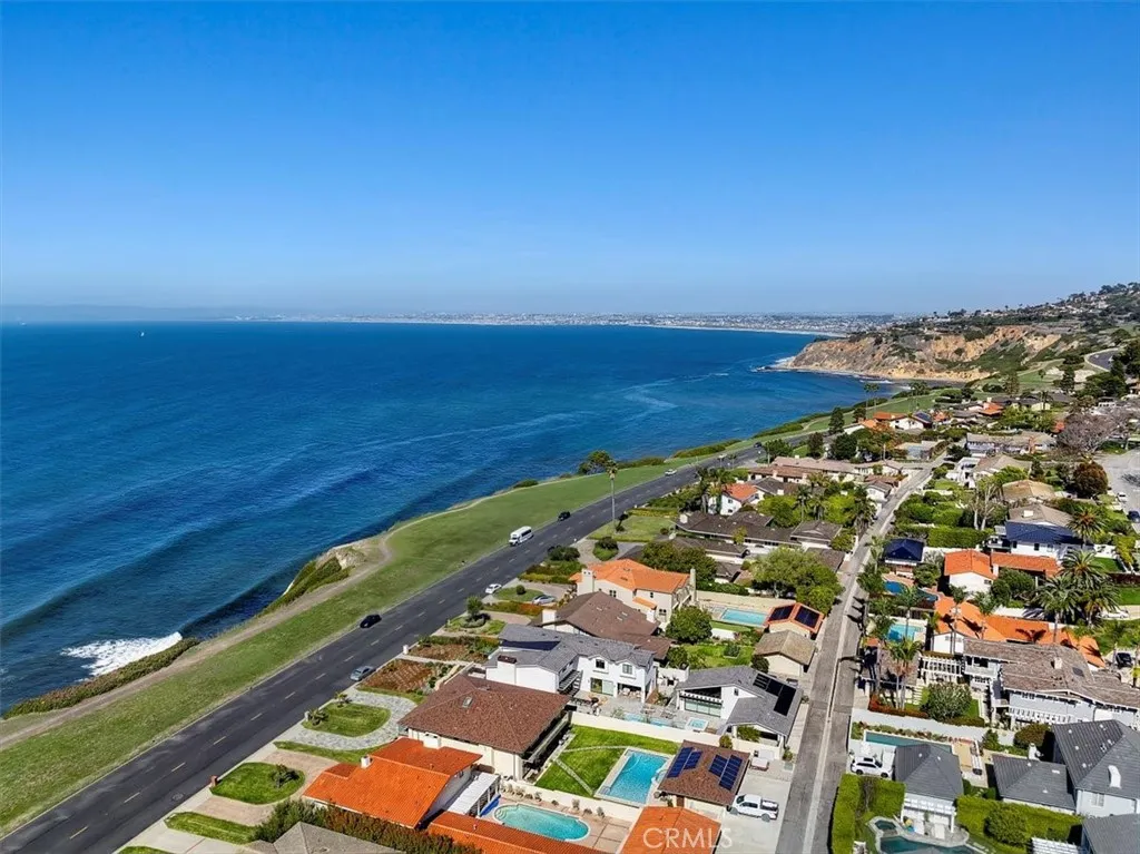 Nestled along the most prestigious street in Palos Verdes Estates, this remarkable residence enjoys an unrivaled location directly across from the bluffs. With protected parkland in front, the home boasts uninterrupted, protected panoramic ocean views stretching from the iconic Queens Necklace to Malibus Point Dume. The breathtaking scenery also includes vistas of downtown Los Angeles, the Hollywood Sign, Griffith Park Observatory, and mesmerizing city lights that twinkle along the coastline at night. Spanning approximately 4,300 square feet (buyer to verify), this expansive home features five generously sized bedrooms and six bathrooms. Upstairs, are five spacious bedrooms, with two offering stunning ocean views and access to a spacious balcony and laundry room. The primary suite is complemented by a luxurious en-suite bath, spectacular views, and dressing area. Three additional bedrooms share a second balcony overlooking the backyard and pool area. The main level is designed for seamless indoor-outdoor living, with large folding style doors that invite the coastal breeze and frame the spectacular ocean views. The open-concept dining area flows effortlessly into the spacious kitchen, family room, a home theater area, and an expansive living room with ocean views provide ample space for entertainment and relaxation. Two half baths serve this level, including one with direct backyard access for convenience when enjoying the pool and outdoor kitchen. The outdoor space is an entertainers dream, featuring a large yard, a built-in cooking area, a pool, and spa. Parking is plenti