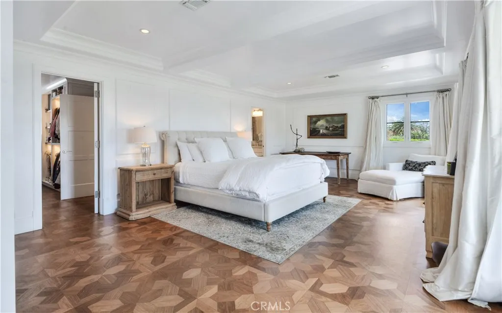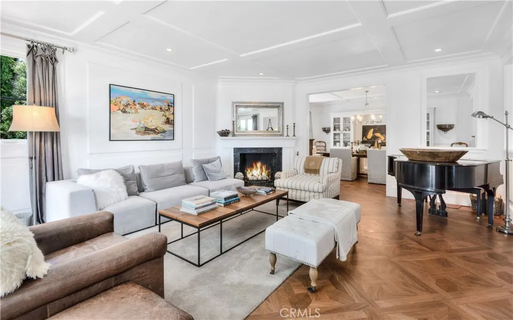 Designed in the spirit of the iconic Shutters on the Beach Hotel, this impressive Resort Point residence sits on a sprawling corner lot with unobstructed ocean views. Soaring 9-foot ceilings and oversized rooms create a remarkable sense of volume, while slate and IPE wood floors, paneled walls, and French doors with integrated shutters add timeless charm. A gracious entry opens to the stunning living room with fireplace on one side and the kitchen with adjacent great room on the other. Anchored by a dramatic 10-foot L-shaped island, the kitchen features marble counters, stainless appliances, and sweeping ocean vistas. The entry level also includes an office, a large formal dining room, and a private guest suite with full bath. The massive family room with wet bar, wine closet, fireplace, and soaring ceilings leads to an amazing 12-seat theater making movie nights and sporting events unforgettable. Upstairs, five spacious bedrooms include a tremendous primary suite with breathtaking views. The outdoors is an entertainers paradise. The expansive, hedge-lined front lawn features a fire pit thats perfect for sunset gatherings, while the private backyard is highlighted by a 50-foot lap pool with spa and Baja shelf, a multi-sport court (pickleball, paddle tennis, volleyball, basketball), an outdoor kitchen with Hestan BBQ as well as a TV to keep the grill chef happy! The 600-square-foot loggia has built-in heaters, fireplace, and a big screen TV that ensures year-round enjoyment. Additional amenities include a Lutron lighting system with programmable scenes, security with cameras