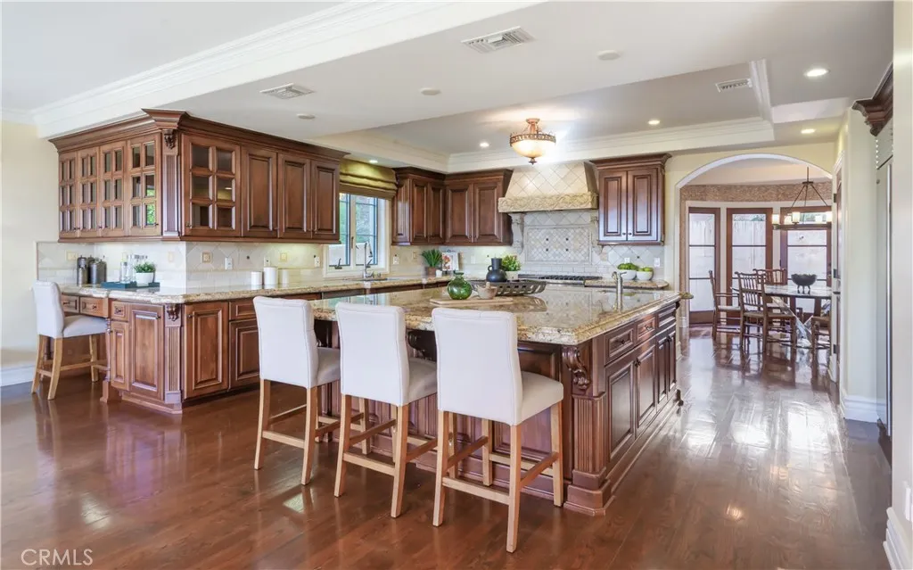 Discover true coastal luxury in this exquisite Mediterranean-style estate, perfectly positioned to capture sweeping ocean vistas from nearly every room. Enter through a private gated entry and step into a spacious grand foyer, where a dramatic spiral staircase sets the tone for the elegance found throughout the home. Designed for both comfort and sophistication, this residence features three stately fireplaces, custom-crafted ceilings, and French doors that bathe the interior in natural light while opening seamlessly to outdoor living spaces. The dream kitchen is a chefs delightcomplete with premium appliances, rich cabinetry, granite counters, custom backsplash, center island with breakfast bar, large walk-in pantry, and a dedicated wine chiller for effortless entertaining. The home features 5 bedrooms with one suite on the main level. The main primary suite features panoramic views, fireplace, plus large bath and dream closet. A second primary suite also has panoramic views. Every detail reflects refined craftsmanship and timeless style, creating a warm and inviting atmosphere within this luxurious estate. Perfect for those seeking serenity, beauty, and coastal grandeur.