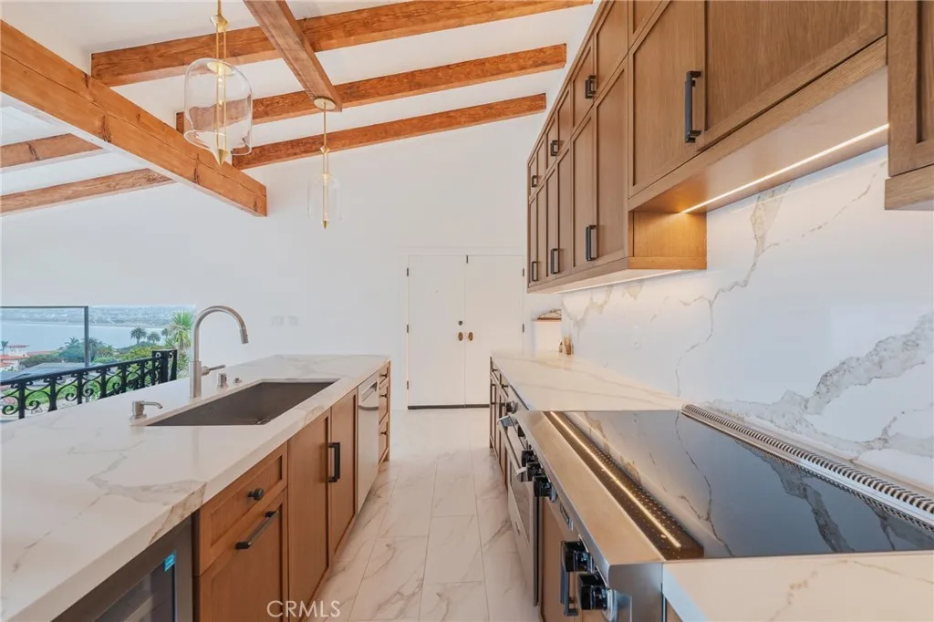 Introducing this stunning Ocean View home in coveted Palos Verdes Estates. Perched above the coastline with breathtaking Queens Necklace and ocean views, this beautifully updated 4-bedroom, 3-bath home offers the perfect blend of modern comfort and coastal elegance showcasing exquisite finishes throughout. Extensively renovated, the home features new upgraded electrical, new copper plumbing, new roof, an updated kitchen with top of the line appliances and a striking kitchen island comprised of calacatta thunder with veins that glow with the flick of a switch. The open-concept kitchen flows seamlessly into the light-filled living room, where floor-to-ceiling glass windows frame sweeping ocean vistas. Originally designed with a family room, the home now boasts a spacious primary suite featuring incredible panoramic views the ideal retreat to enjoy sunsets over the Pacific. Thoughtful upgrades include permitted direct garage access and a conveniently relocated interior laundry area. With approximately 2,100 sq. ft. of living space, every detail has been curated for comfort, function, and style. Perfectly situated in a premier location on Via Almar, this home is just a short stroll to Malaga Cove Plaza, scenic walking trails, and the best of Palos Verdes living. A rare opportunity to own a turn-key coastal gem in one of the most desirable neighborhoods on the Peninsula. Come see it now before it's sold.