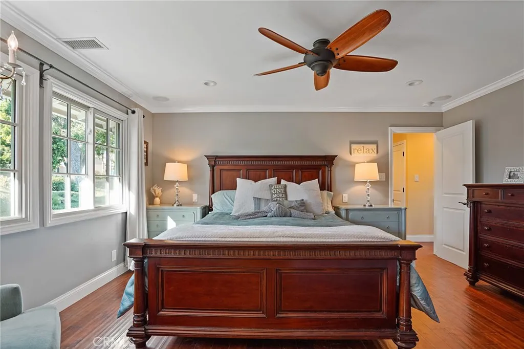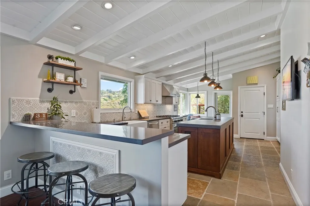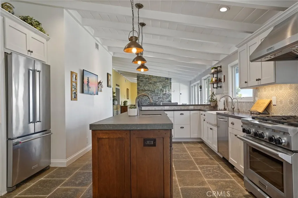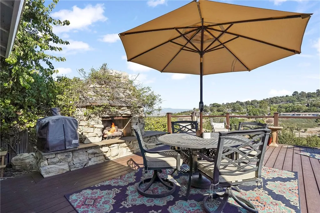 Discover quintessential one level living in this turnkey home nestled within the family friendly, equestrian oriented Westfield community. Perfectly positioned on the view side of Sunnyridge Road, the property captures sweeping panoramic canyon vistas, peekaboo harbor views, and sparkling nighttime city lightsan unforgettable backdrop for gatherings with friends and family. Every detail of this custom residence has been thoughtfully upgraded in the last 10 years. The spacious limestone floored kitchen showcases an open beam ceiling, an expansive center island, granite countertops, stainless steel appliances, a custom tile backsplash, and a bright, inviting breakfast nook. Its a dream space for both chefs and entertainers. The open beam design continues into the living room, where an impressive stacked stone fireplace anchors the space. Double French doors lead to an expansive Trex deck with its own custom stone fireplace, creating seamless indoor outdoor living. The homes three bedrooms are bright, comfortable, and generously sized, each offering ample closet space. The luxurious main suite features a large walk in closet and an elegant en suite bath complete with a heated jetted tub and shower. The additional two bedrooms share a beautifully appointed full bathroom. An oversized two car garage with built in cabinetry adds convenience and storage. Low maintenance, drought tolerant landscaping enhances both the front and back yards, complemented by fruit trees, boxed vegetable gardens, and a terraced play areabringing natural beauty, curb appeal, and a sense of serenity to t