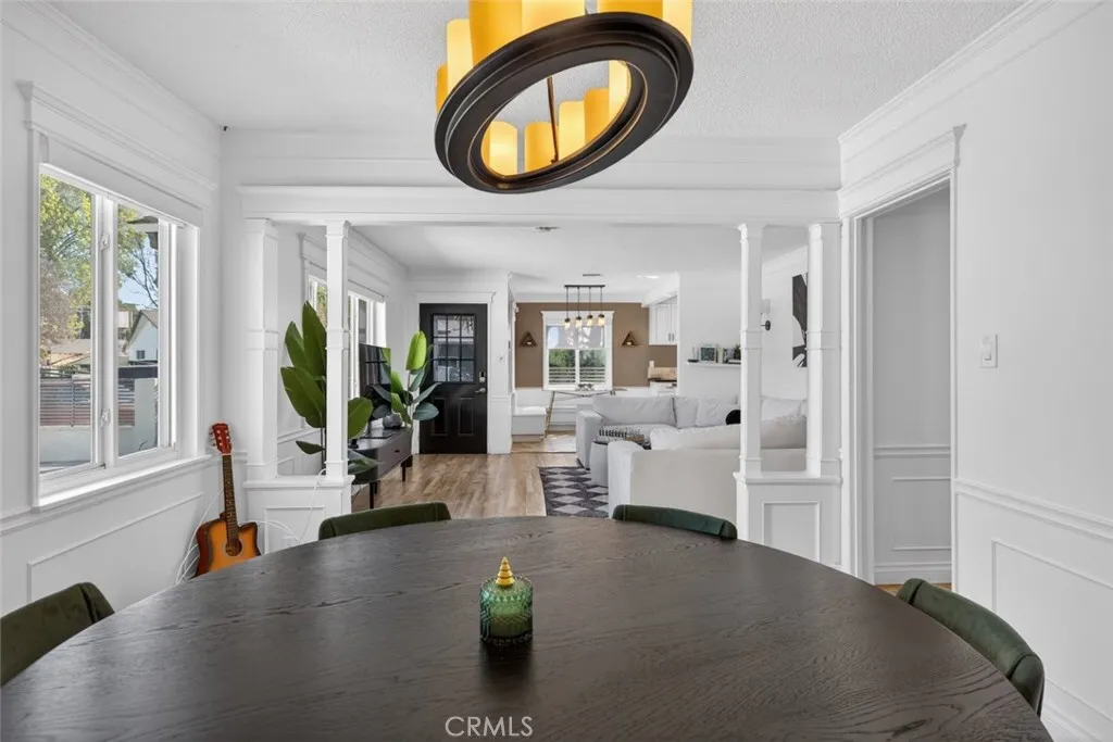 Welcome to 14942 Bryant St, Panorama City, a beautifully maintained home located on a quiet cul de sac street in a desirable neighborhood. This 3 bedroom 2 bathroom residence offers approximately 1454 sq ft of living space on a generous 8477 sq ft lot, blending comfort, functionality, and versatility. The home features an open floor plan filled with abundant natural light, complemented by upgraded laminate flooring, updated countertops, and attractive cabinetry throughout. The kitchen showcases clean finishes and flows seamlessly into the living and dining areas, ideal for everyday living and entertaining. Additional highlights include central AC, a two car attached garage, and a large driveway offering ample parking. The private backyard provides a peaceful setting with a covered patio, suitable for outdoor use and gatherings. A permitted storage structure in the rear offers added flexibility for storage or workspace needs. Conveniently located near Panorama Mall, schools, and public transportation, this home delivers both comfort and convenience in a prime location.