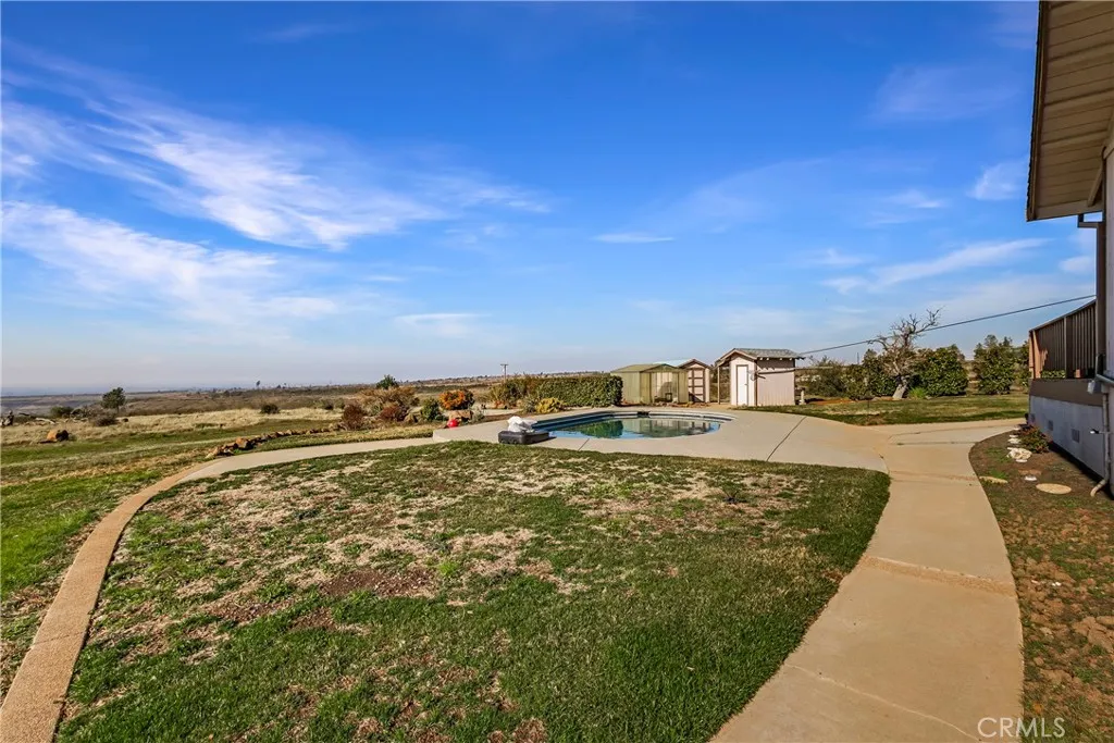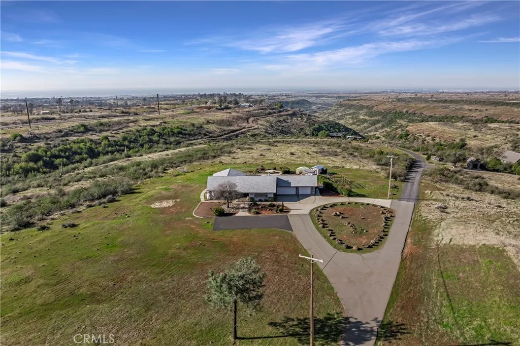 Fantastic Lower Paradise Location for this 15 ACRE property. VIEWS of Chico, Sutter Buttes and the Coastal Mountain Range! Have amazing views every day! Looking for space then this is it! BRING YOUR HORSES! Great Horse property to develope! Tons of flat area for a SHOP, ADU or both! This 1990 built home offers 3 bedrooms plus office, 2 baths, 3 car garage with 1/2 bath and third bay garage door being extra tall! There is also an in-ground POOL with incredible views!!! New interior paint, Mannington laminate flooring, Marquis carpet with #8 Pad, bathroom faucets, toilets, garage, kitchen and security lights, GE range, LG front load washer and dryer, Pool Pump, booster pump, filter and safety drains, chimney cleaned, and spark screen replaced. The home offers a large living room with vaulted knotty pine tongue & groove ceiling, bay picture window and a floor to ceiling rock hearth with a free-standing Schrader Wood Stove. Off the living room is the dining area & kitchen. The kitchen offers tons of cabinets, solid surface counter tops, breakfast nook, 7' eating bar and tiled floors. Down the hallway are built in cabinets, spacious guest bedrooms and the office. The primary bedroom has vaulted knotty pine tongue & groove ceilings, views of the valley and a slider to the back deck. The primary bath has dual sink vanity with tiled counters and a tiled step in shower. The guest bath offers tiled counters and a tiled tub/shower combination. There is a cummings back up generator system. The well has a 1000 gallon holding tank. The home is on 9.89 acres and this property is including