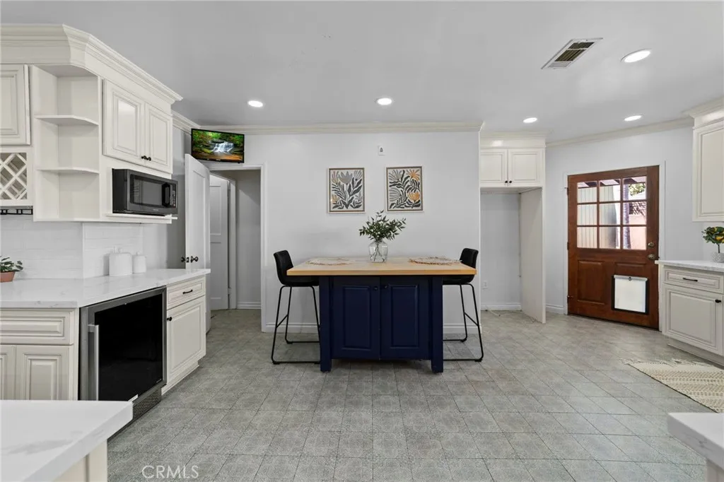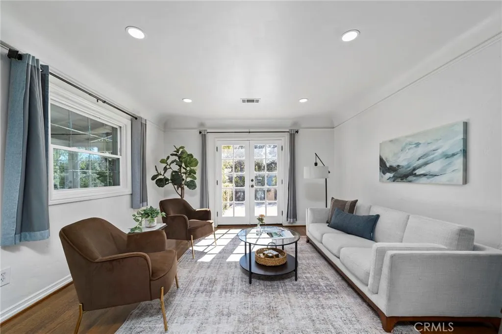 Located in highly sought-after unincorporated Pasadena, this property offers versatility, comfort, and thoughtful design throughout. The main home includes 3 bedrooms and 3 bathrooms across 2,152 sq ft of living space, featuring curved ceilings and archways that connect the living room with fireplace to the family room and dining area. The dining room opens to a large kitchen with an extended island, a Viking Professional 6-burner range with griddle and hood, wine refrigerator, and a reverse osmosis hot water tap at the sink. Two of the bedrooms provide direct access to the covered back patio, where mature wisteria vines create a comfortable outdoor setting for dining and relaxation. Off the kitchen, a finished bonus basement with its own mini-split HVAC offers an ideal space for an office, gym, studio, or additional living area. Situated on a corner lot just under 11,000 sq ft, the property includes raised garden beds, a play area, RV parking, an electric driveway gate, and easy-to-maintain front yard landscaping. A self-filling dog water bowl is integrated into the yard, making outdoor living convenient for pets. Additional features include paid-off solar and a sauna. The garage offers two car parking along with a studio complete with a kitchenette and bathroom, providing flexibility for guests, extended family, rental, or workspace needs. This is a well-designed property offering both indoor comfort and valuable outdoor amenities in a desirable Pasadena location.