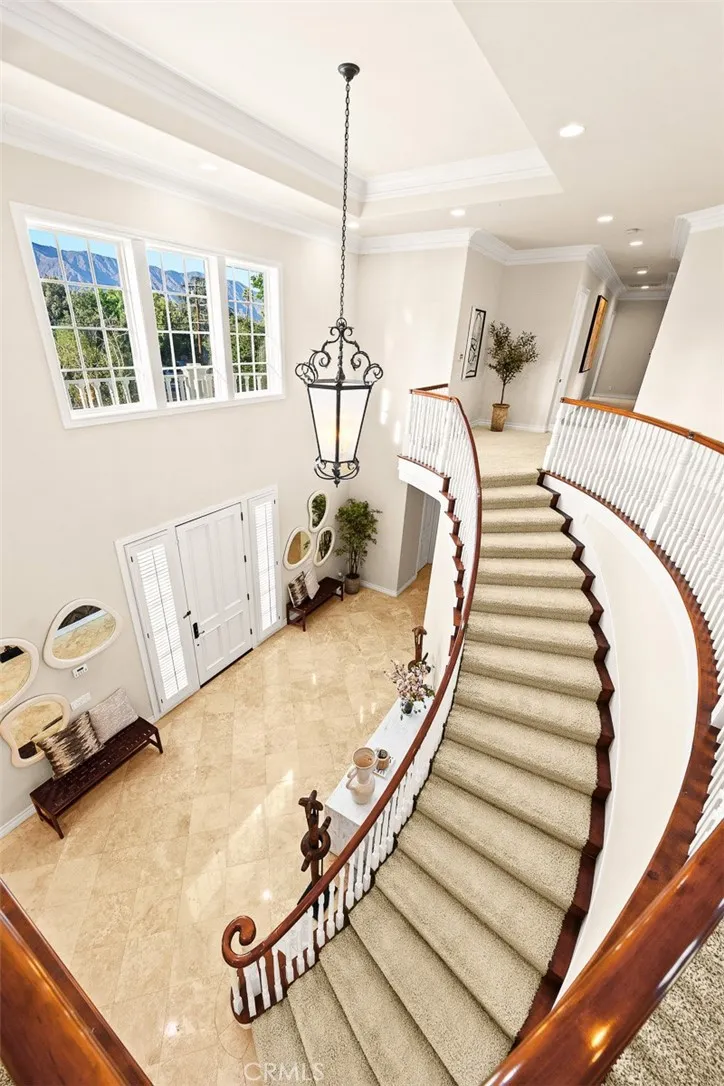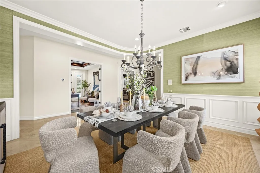 Location! Location! This magnificent Colonial-style estate is located in Pasadenas prestigious Chapman Woods neighborhood, adjacent to San Marino. Featuring 5 bedrooms and 4.5 bathrooms, it seamlessly blends timeless elegance with modern comfort. Designed by renowned architect Robert Tong and meticulously constructed by Mur-Sol, the residence sits on nearly half an acre of beautifully landscaped grounds, exuding sophistication and grandeur.A wide circular driveway leads to an impressive faade, where elegant columns and double doors create the stately presence of an estate home. Upon entering, youre greeted by a soaring 25-foot foyer adorned with French stone flooring, creating a bright and elegant sense of space. The formal living room features a modern marble fireplace and exquisite niche details, while the spacious, high-ceiling family room boasts upscale custom wood cabinetry, making it the perfect place for family gatherings and entertaining friends. The kitchen is designed in an open French style, featuring white carved cabinetry and a sophisticated stone center island surrounded by breakfast and dining areas that radiate both luxury and warmth.The first floor includes a versatile office and a separate guest suite. Upstairs, the well-planned layout offers two additional suites and two spacious bedrooms. The romantic and stylish primary suite includes an expansive walk-in dressing room and offers delightful views of the backyard, where you can enjoy the sights and sounds of lush gardens and the sparkling pool.The meticulously designed backyard is an entertainers paradis