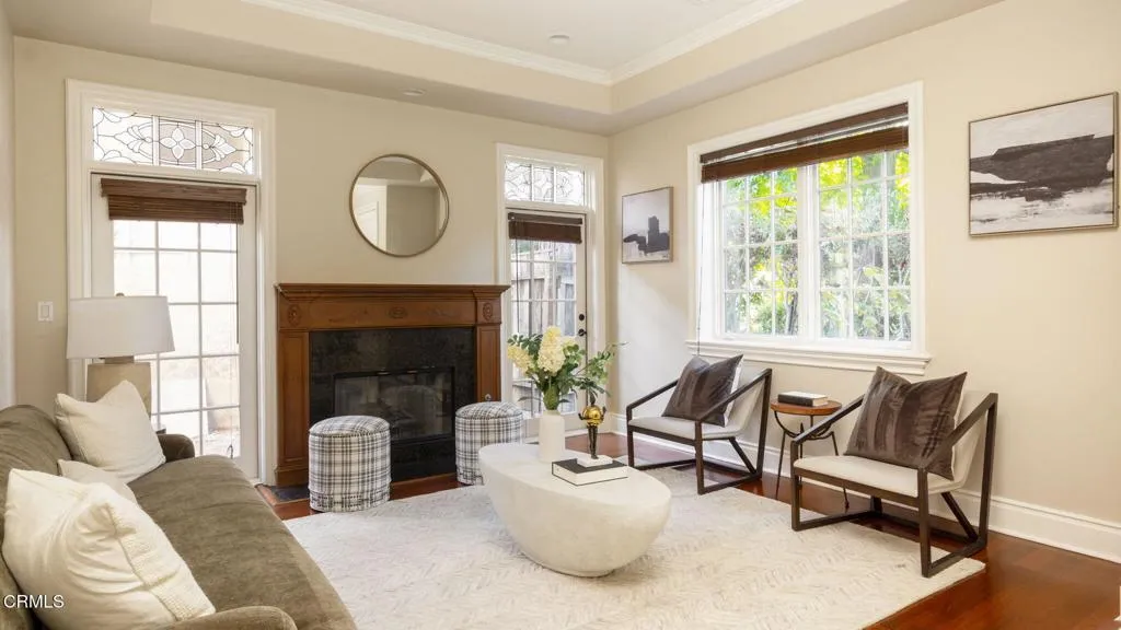 Built in 2003, this elegant community has just six units, and Unit #2 is truly exceptional. A personal elevator offers easy access from the secured parking garage directly into the unit, and services all levels. Featuring high ceilings, hardwood and tile floors, and stained-glass decorative windows that let the natural light in. The family room features a gas fireplace, recessed lighting, and access to a large, wraparound brick patio, perfect for dining al-fresco. The living room flows seamlessly into a formal dining room, accented with wainscoting and crown molding. The kitchen boasts plenty of countertop space including a breakfast bar, 6-burner Thermador range, GE Monogram refrigerator, double oven, and a hand-painted ceiling mural. A separate laundry room offers a sink, tile countertops, and ample cabinet storage. A powder room for guests completes the main level. Head upstairs with your private elevator or stairs and find 2 large bedrooms that share a full bathroom, and a stunning primary suite, complete with a walk-in closet, spa-like bath with dual-vanities, a walk-in shower, and a soaking-tub. This exceptional home includes 2 storage spaces in the parking garage and 2 parking spaces, and Google Home surveillance cameras.