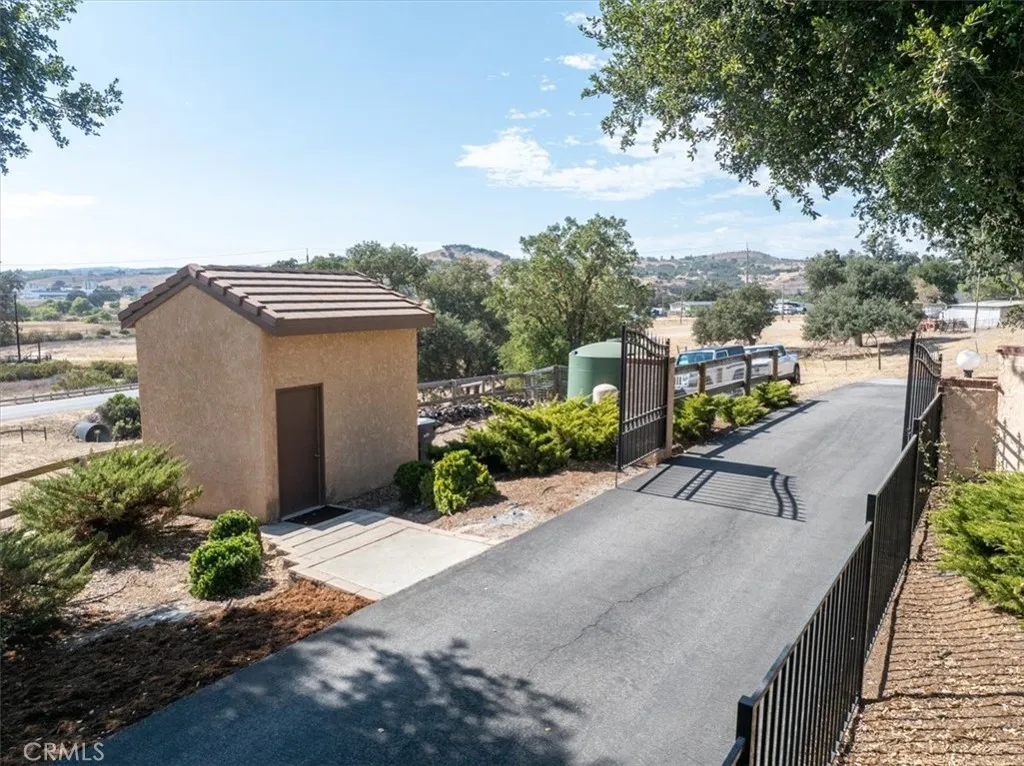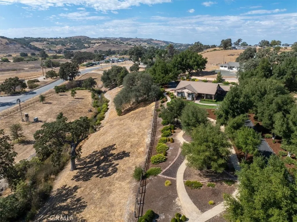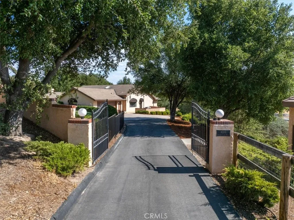 Welcome to 1010 Spanish Camp -An exceptional gated estate nestled in one of Paso Robles most coveted locations. Set on 3.73 oak-studded acres, this residence is a rare opportunity to enjoy the wine country lifestyle while just minutes from downtown Paso Robles. This single level 3 bedroom, 3 bath home spans 2,328 sq ft of thoughtfully curated design. Expansive windows frame endless views while open living spaces with cathedral ceilings include both a living room and a family room, as well as a formal dining room with built-in cabinetryall flowing seamlessly into a chefs kitchen with stainless steel appliances, an eat-in dining area and 2 breakfast bars -perfect for gathering with family and friends. The primary suite is complete with a spa-inspired bathroom with double vanity, walk-in shower with glass surround, and separate water closet with soaker tub, as well as a custom walk-in closet, and a sitting area with a French door to the backyard- ideal for peaceful relaxation. Two additional bedrooms featuring custom-built closets with pull-outs offer space, comfort and convenience. This homes amenities include an additional full-size bathroom with double vanity, a powder room, and a full-size laundry room with built-in cabinets. Step outside and the expansiveness of this estate begins to shine. Meandering walking paths lead you beneath a canopy of oaks where peaceful seating areas invite you to take in the tranquil surroundings. A seasonal creek adds charm to the landscape, with two private wells and a detached buildingthat is suitablefor a remote office.This property offers