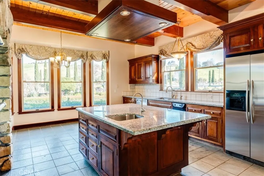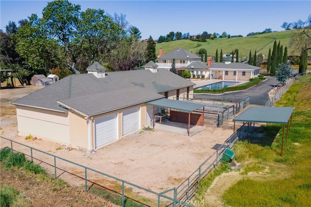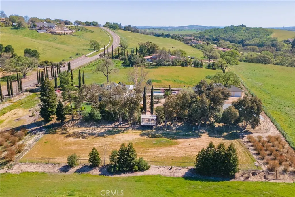 You must see this stunning Country Ranch home with lovely views in each direction in a highly desirable neighborhood. This distinctive Spanish Camp beauty on almost 5 acres is located just outside the city limits of Paso Robles. Nestled in the heart of this prized community you will find more of what your heart seeks than almost anywhere. The 4 bedroom plus office home of 3930 square feet has a primary bedroom and office downstairs plus 3 bedrooms upstairs one of which is en suite. From the marble tiled entry with sweeping staircase to mahogany cabinetry and woodwork throughout this classic home to the Vermont slate floors and native rock wall fireplace, you will be delighted with the attention to detail in this 1988 built home. This horse ready property will delight any equestrian with its 4 stall barn, tack room, and storage garage for an 4 additional vehicles. Steel pipe fencing surrounds the acreage and is used as cross fencing for the pastures. It also encompasses a riding arena of approximately 230' X 100' with a raised viewing stand. This arena would please any ranch or dressage rider. Or perhaps you need a private soccer field? And for those who love a summertime party, the covered patio which overlooks the 75 X 17 lap pool is ready for fun and exercise. The land includes an olive orchard of over 30 trees as well as an organic pomegranate orchard with over 50 bushes. There are raised garden beds, fruit trees and grape vines planted throughout this lovely property. An owned solar system and on demand hot water unit help with utility costs. This property is designed t