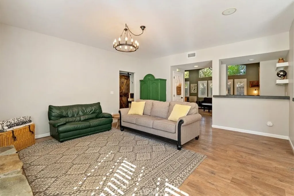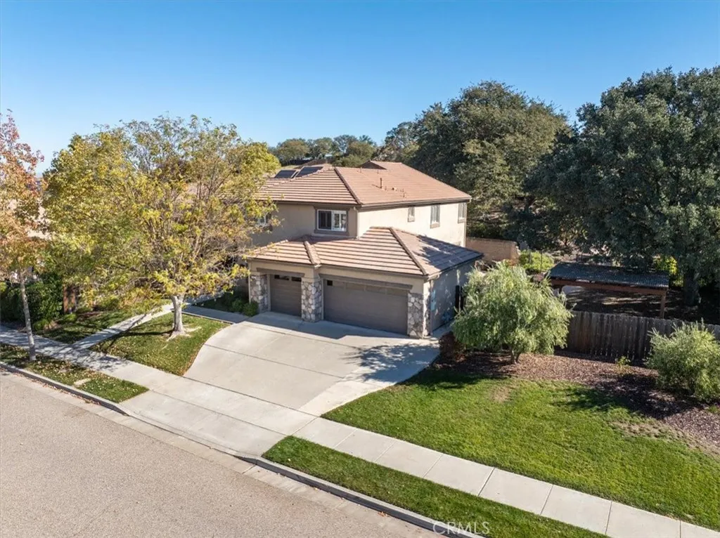 Beautifully situated in Montebello Oaks near open space and close to charming Paso Robles downtown shops and restaurants, this home captures the essence of relaxed sophistication with panoramic views and timeless farmhouse appeal. A custom hardwood front door opens to inviting interiors that include a separate den or office/artist studio, luxury vinyl flooring, recessed lighting, vaulted ceilings, plantation shutters, and a custom stair railing. The built-in bar with wine storage and refrigerator adds a touch of warmth and entertainment flair. The remodeled kitchen showcases a drop-in farm sink, stainless steel appliance package with double ovens and a five-burner cooktop, a walk-in pantry, and a message center for everyday convenience. The dining room offers built-in cabinets with glass panels, while the family room features a gas fireplace with a natural stone hearth. The powder rooms charming barn door and the indoor laundry room with washer, dryer, and drop-in sink enhance everyday function. The primary suite is a retreat with dual sinks, a large walk-in closet with custom built-ins, a beautifully tiled oversized shower, and a soaking tub. A guest en suite opens to its own veranda, perfect for enjoying morning coffee or evening sunsets. Additional highlights include a three-car garage, tile roof, garden cottage with electrical power, raised vegetable beds, and drought-tolerant landscaping. This exceptional property blends privacy, craftsmanship, and Paso Robles charm in one captivating setting.