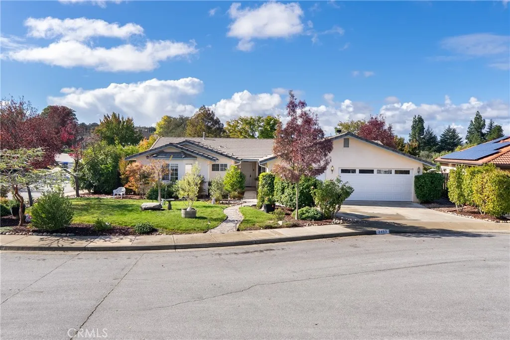 Welcome to this charming single level home nestled in the desirable Meadowlark Estates on a spacious corner lot in the heart of wine country. Step inside to a spacious main living area featuring a cozy wood-burning fireplace perfect for relaxing evenings. The kitchen offers bar seating, a newer stove and dishwasher, and a great flow for entertaining. The primary suite includes a walk-in closet and a beautiful bathroom with double sinks and a tiled shower. Outside, enjoy a large backyard complete with a covered concrete patio, pergola, garden area, and a productive peach tree all on a sprinkler system for easy maintenance. A 3-car garage provides plenty of space for vehicles, hobbies, or storage. This well-maintained home offers comfort, convenience, and the perfect Paso Robles lifestyle.