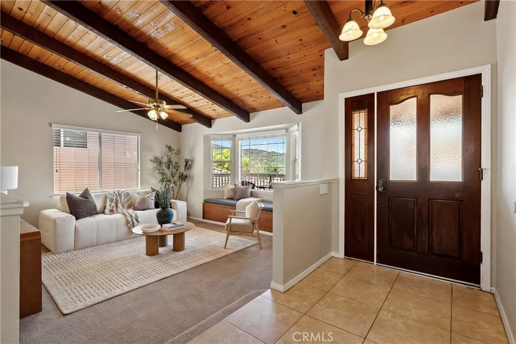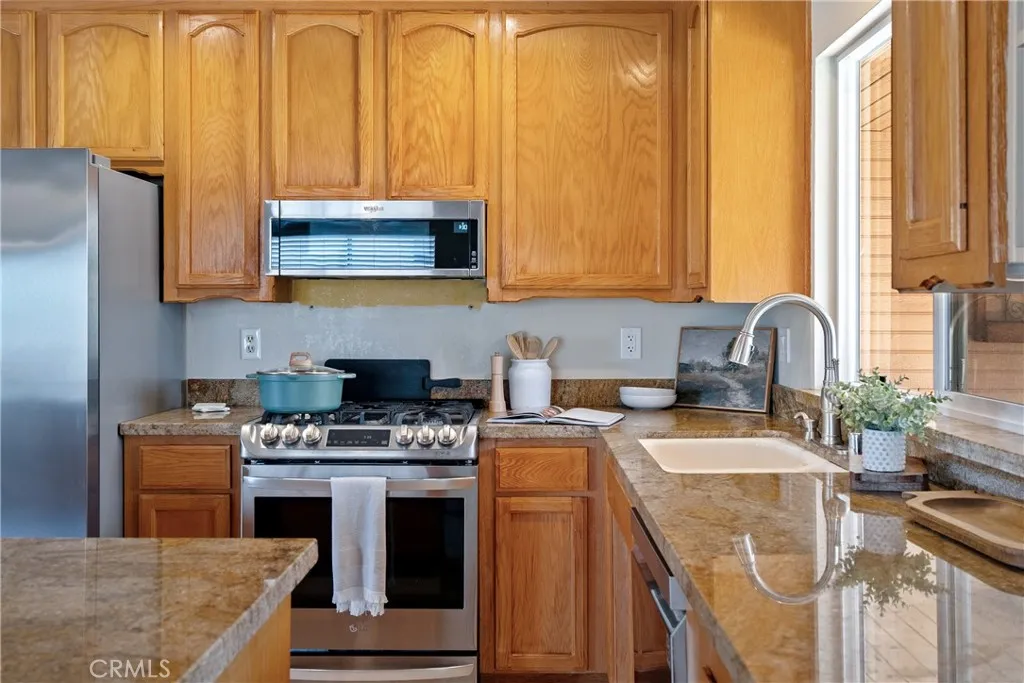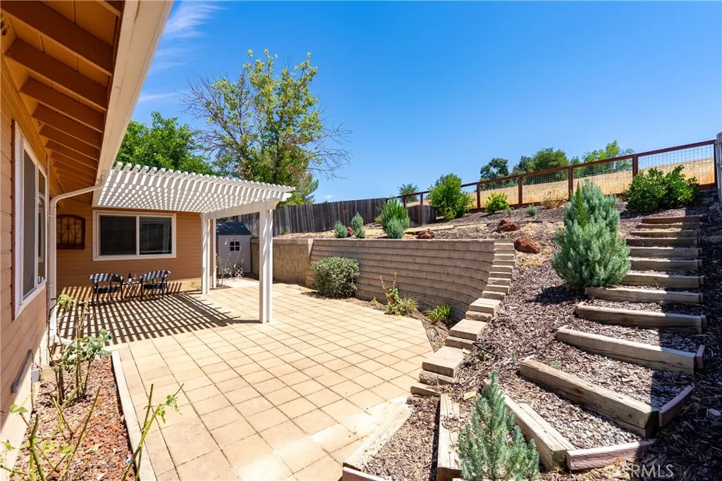 Enjoy Lake life in this three bedroom two bath home is located in a desirable neighborhood in the gated community of Heritage Ranch. Meadow and mountain views from your front porch invite you to sit outside with your morning coffee or an evening glass of wine while you watch the sunset. There are cathedral ceilings and oak beams in the step down living room and in the kitchen and family room area. The kitchen is open to the family room and dining areas and offers granite counter tops, stainless steel appliances, a breakfast bar with pendant lights, and plenty of storage. Relax by the wood burning stove in the family room area on cold winter nights. There is an indoor laundry room with additional storage and access to the back yard. You can also access the back yard from the kitchen. In addition to space for entertaining and barbecuing, the yard offers an upper level perfect for a firepit or spa and backs up to open space. The spacious primary bedroom has a large walk in closet, dual sinks in the bathroom and a french door to the yard. Down the hall are two additional bedrooms and a full bathroom. The garage has cabinet storage, pull down attic access as well as access to under house storage. Community amenities include gated entry private launch ramp, swimming pools, tennis courts, pickleball courts, recreation barn, senior center, equestrian center, riding and hiking trails, dog park, market, fitness center, and gas station. Call your realtor today!