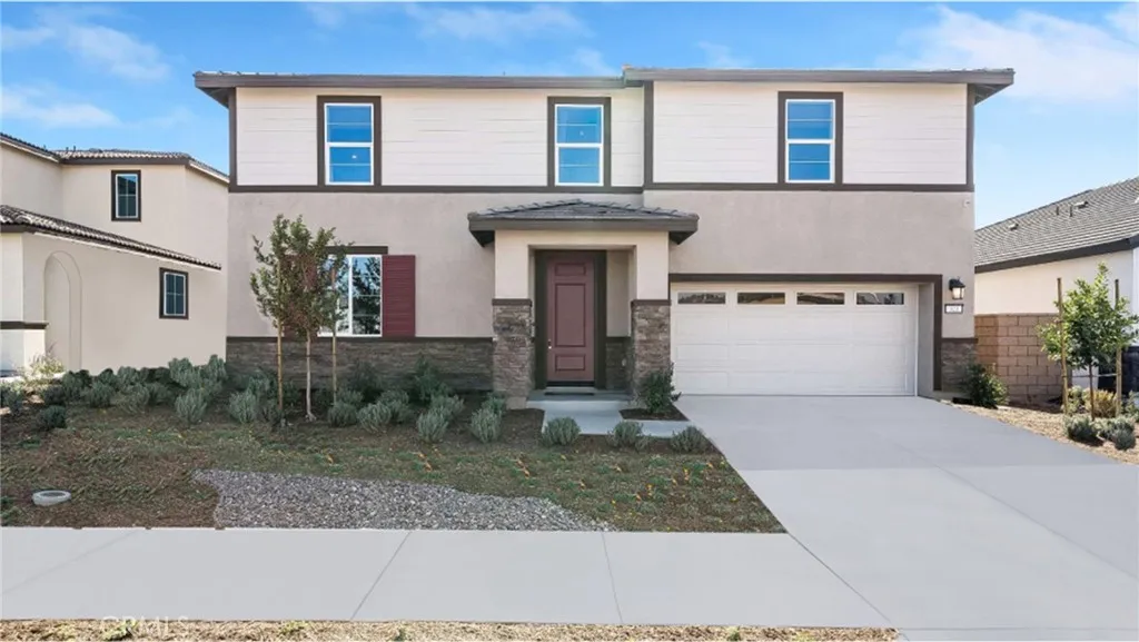 NEW CONSTRUCTION! This new two-story home is host to an open-concept floorplan on the first level, helping to simplify everyday entertaining and multitasking. A full bathroom and bedroom are tucked into a private corner off the foyer. On the second floor, four additional bedrooms surround a spacious and flexible loft space, including the owners suite with a private bathroom and walk-in closet. The kitchen features new caledonia granite counters and white cabinetry. The home features a four bay garage. Amber Ridge is a new collection bringing brand-new single-family homes to the Green Valley Ranch masterplan, now selling in Perris, CA. The community offers large homesites and fantastic onsite amenities, with select plans featuring Lennars Next Gen home design. Local attractions including Lake Perris, the Railway Museum and the Perris Speedway offer ample recreation and entertainment options. Proximity to the 215 and 74 freeways helps to simplify everyday commutes and travel, and the community is serviced by schools in the Romoland and Perris Unified School Districts.
