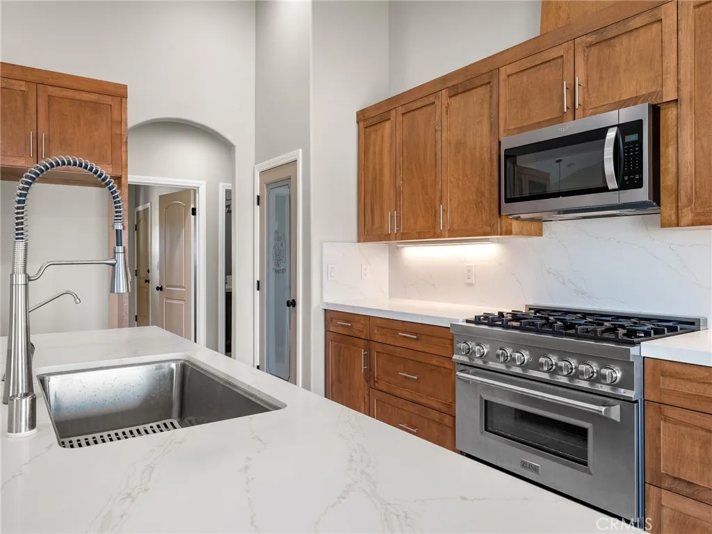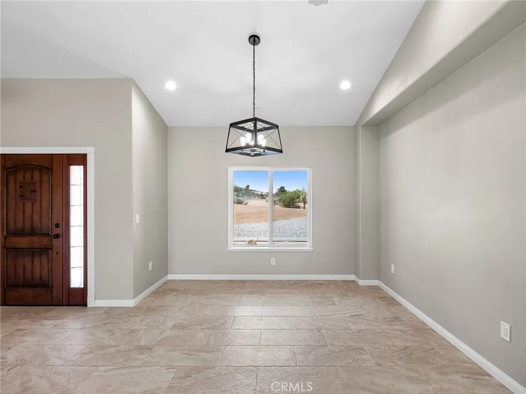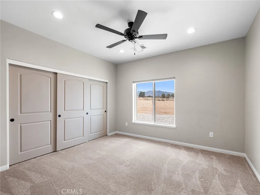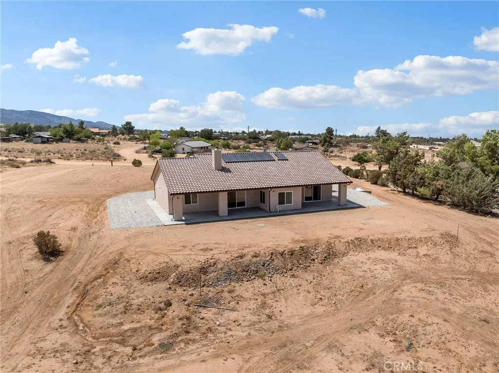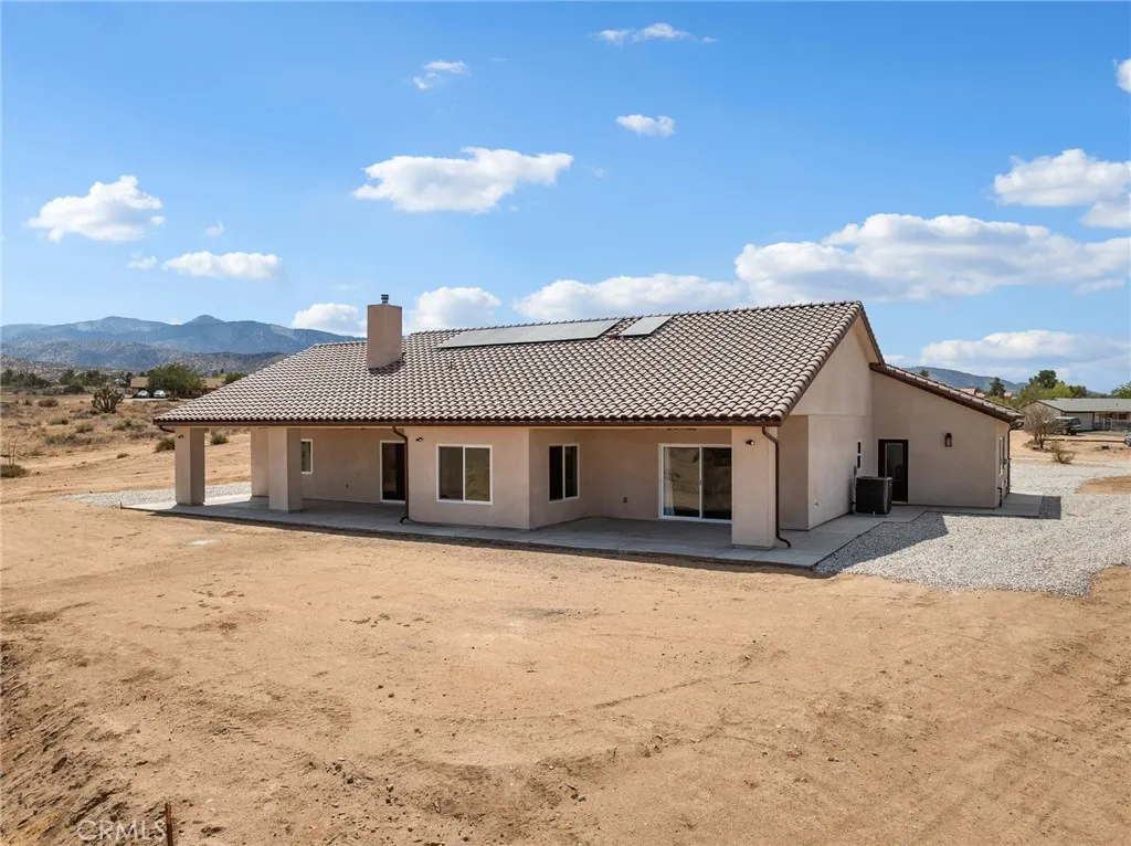 Welcome to this custom-built home in the South foothills of Phelan, less than 1.5 miles from schools and shopping, with breathtaking mountain views and convenient access to the paved intersection of Johnson Rd. and Neilson Rd. Built in 2024 and nestled on a spacious lot in Snowline School District, this home combines thoughtful craftsmanship with energy efficiency and modern comforts. Inside, youll find a bright open-concept floor plan with a breakfast nook, formal dining area, and a chefs kitchen featuring a commercial style Z-Line 36 6-burner gas range with electric convection oven, stainless steel appliances, Ashwood shaker cabinets with soft-close drawers, and sleek quartz countertops. A large pantry adds extra storage. The living area is anchored by a custom wood-burning stove with a flat rock hearth, creating the perfect spot to gather on cool winter nights. The private master suite is a retreat of its own, complete with a soaking tub, tiled shower, toilet room, walk-in closet, and access to its own 27x15 covered patio. Two additional bedrooms offer comfort with carpeted flooring, while the rest of the home features durable custom tile and flat black fixtures for a modern touch. Designed with efficiency in mind, this property includes paid off solar panels, an owned propane tank, a Culligan water softener, RO drinking water system, tankless water heater, upgraded stylish prohibition era wood grain weather resistant front door, and full-perimeter gutters draining into underground drainage. Cooling and airflow are enhanced with ceiling fans throughout. Outdoor living is