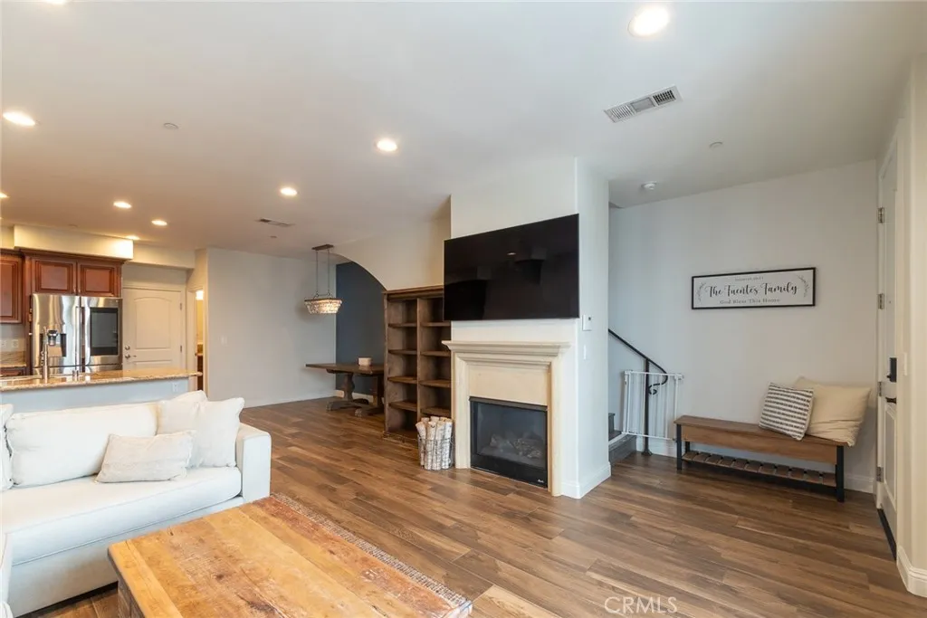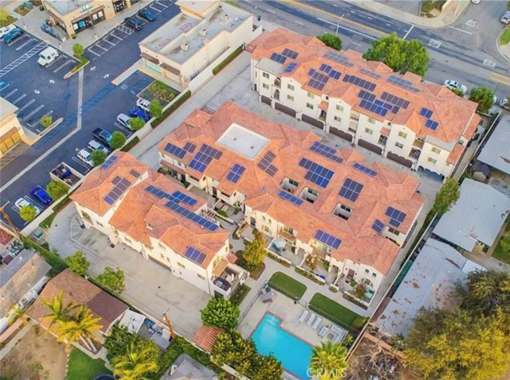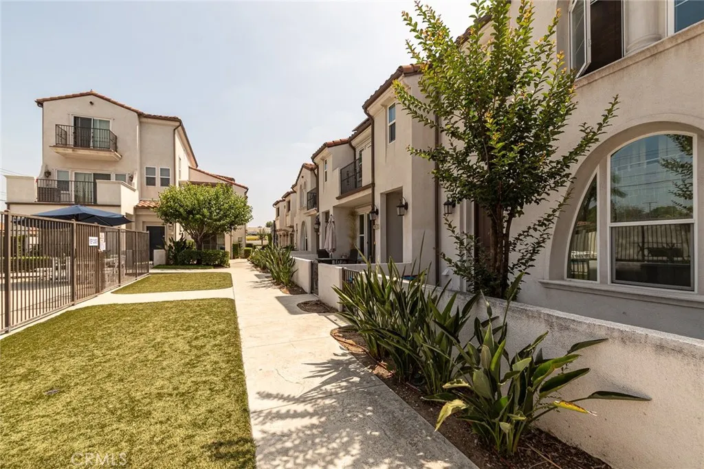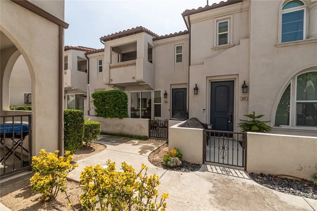 BACK ON THE MARKET. Stunning Mediterranean Condo - 3 bedrooms , 3 bathrooms (1 downstairs), 1,473 sq. ft. in a gated community. Built in 2015, this home boasts upgraded flooring, a gourmet kitchen with stainless steel appliances, and a cozy fireplace in living room. STOVE, REFRIGERATOR, WASHER, DRYER AND BEVERAGE COOLER INCLUDED with no warranties. Two balconies in upstairs bedrooms. The primary suite features an enclosed balcony with great view of the pool and dual walk-in closets. Built in cabinets in laundry closet. SOLAR PANELS (Seller Owned) keeps electrical bills low. TANKLESS WATER HEATER and attached two-car garage. 11 miles to Downtown LA. Prime location near parks, shopping, and freeways. This gem offers luxury and convenience. Its perfect for families or single professionals. Great price for a great home.! See 3D tour.