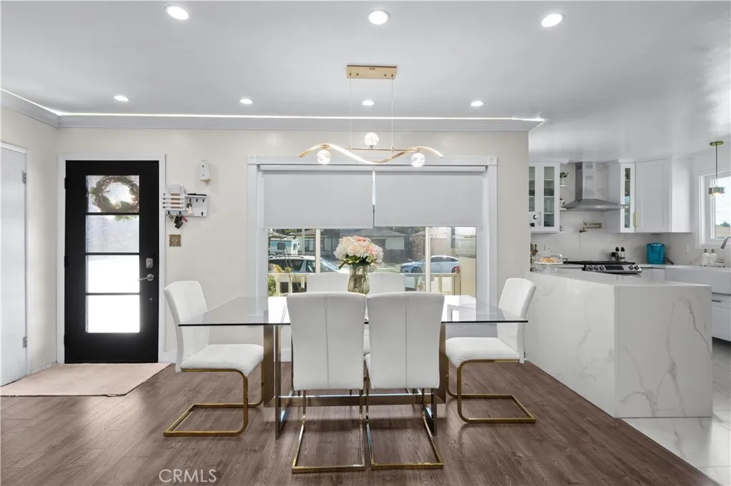 Welcome to 8849 Pico Vista, a charming 5-bedroom, 2-bath corner lot home located on a quiet non-through street in the desirable southeastern edge of Pico Rivera. Garage has been divided as a home office with a sliding door access to the back yard. This spacious residence offers a thoughtfully designed layout, featuring a large living and dining area filled with natural light, a medium-sized gallery kitchen with quartz countertops, back splash, tile flooring and CAFE Brand appliances. A convenient laundry area right off the kitchen. The home includes laminated flooring and updated tile in key areas. Ceiling fans throw-out the home. Enjoy outdoor living with a rear patio ideal for gatherings, while the semi-attached 2-car garage and driveway, accessible from the cul-de-sac, provide ample parking. Additional highlights include central heating and the peace of mind that comes with a well-maintained, move-in ready home. With easy access to the 605, 5, and 105 freeways, youre just minutes from Downtown Downey, Downey Landing, and The Promenade at Downey. Dont miss the opportunity to own this spacious and inviting home in a convenient location!
