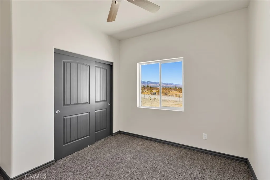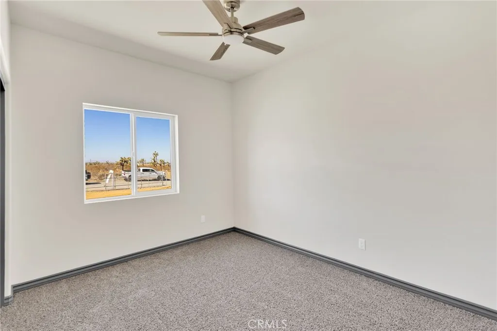 Welcome to your modern desert retreat in Pinon Hills. This brand-new, energy-efficient 4-bedroom, 3-bath home offers 2,100 sq. ft. of contemporary living on a fully fenced 1.87-acre parcel with flat, usable land. Located on Rosado Roadless than 300 feet from paved Duncan Roadthis home combines peaceful rural living with easy access to Highway 138, Snowline School District, local shopping, and Wrightwood mountain recreation. Inside, the open-concept layout showcases a clean, modern palette with contrasting dark trim, luxury vinyl plank flooring, and plush bedroom carpeting. The chefs kitchen features gray cabinetry, soft-close drawers, custom quartz counters, and coordinated finishes carried through the bathrooms, hallway, and laundry room. The primary suite includes a spa-inspired bathroom with a custom tile shower and a walk-in closet with built-in shelving and a dedicated shoe rack. Energy-efficient upgrades include dual-pane windows and sliders, a 5-ton HVAC system, solar panels, full Title 24 compliance, and radiant barrier roof insulation. An oversized 3-car garage with extra depth provides room for trucks, toys, or a workshop. The expansive lot offers plenty of space for RV parking, horses, or future additions. Additional features include a covered front porch, barn-style interior doors, and modern designer finishes throughout. This is new-construction acreage living at its bestprivacy, views, and convenience all in one of the High Deserts most desirable areas.