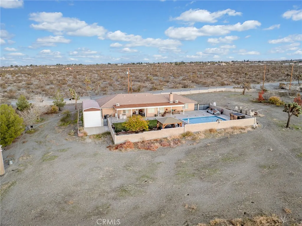 Pride of ownership shines through on this beautiful desert home. Discover the perfect blend of space, comfort, and modern upgrades in this beautifully updated 4-bed, 2-bath home on a sprawling 2-acre lot, complete with an additional room easily convertible into a 5th bedroom. Set behind an electric gate with a block wall, this property offers exceptional privacy and room to grow. Step inside to an inviting open floor plan featuring a remodeled kitchen with a farmhouse sink, built-in wine fridge, LED track lighting, and wood shutters throughout. The home is equipped with practical upgrades including a tankless water heater, soft water system, three AC mini-splits, and a wood-burning stove. Enjoy resort-style living with a sparkling saltwater pool and spa, plus French doors opening to expansive outdoor space perfect for entertaining. Additional highlights include a renovated septic system, carport with an automatic garage door, extra side gate for easy access, and plenty of room for RVs, toys, or future additions. This property offers the ideal combination of modern convenience, rural space, and move-in ready comfortan exceptional opportunity you wont want to miss.