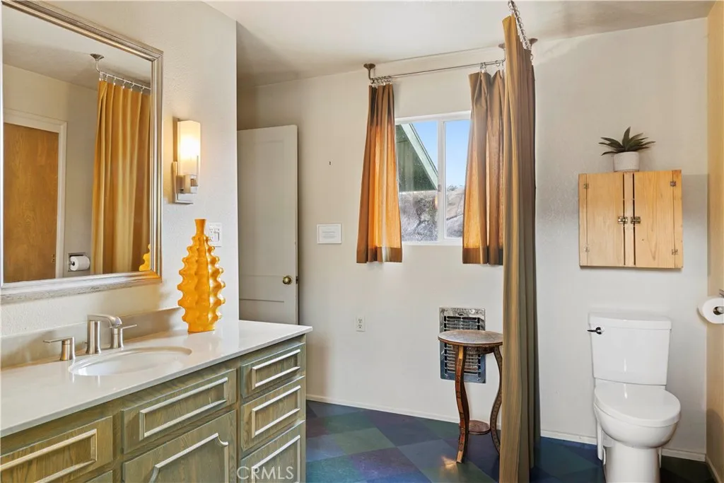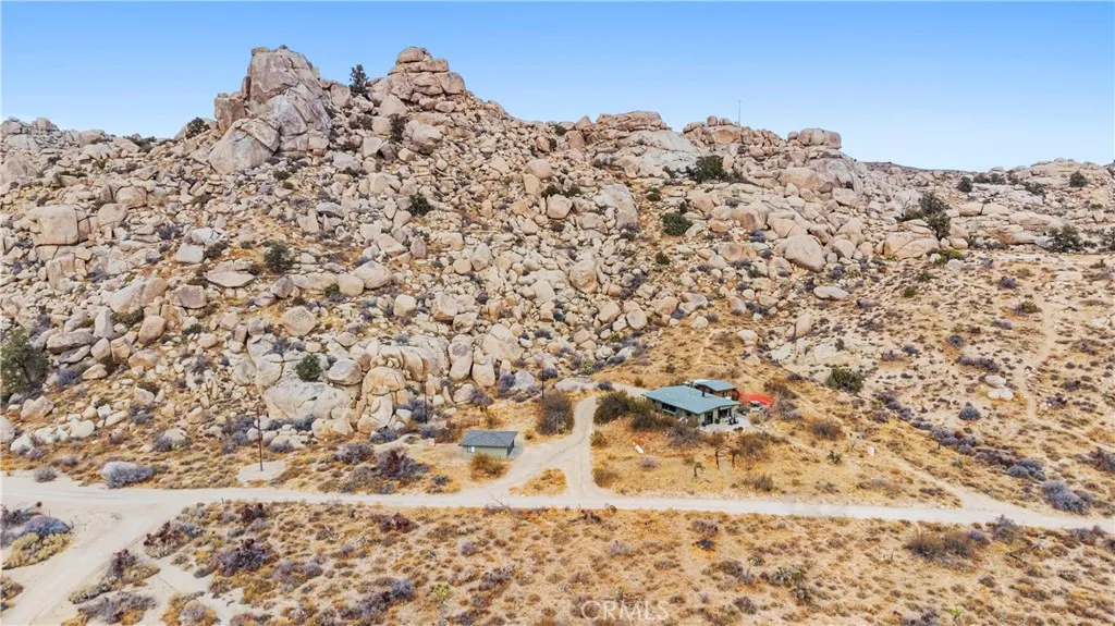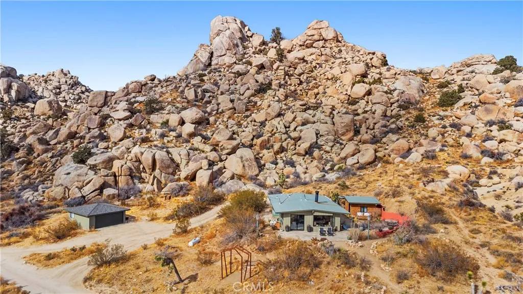 Set among massive boulders, native wildflowers, and old-growth Joshua Trees, this 5-acre property in Gamma Gulch feels like something you stumble upon once and never forget. Quiet, cinematic, and deeply peaceful, its the kind of place where the desert shows offsunrises, long shadows, and sweeping views that stretch all the way to Joshua Tree National Park, and the snow-capped peaks of Mount San Jacinto. The main home is a thoughtfully updated 1-bedroom, 1-bath with just over 1,000 square feet, designed to frame the landscape from every room. Enter through custom iron doors by Pinkys into a welcoming space that blends craftsmanship with comfort. The kitchen is a dream for anyone who loves to cook, featuring a Viking range and walk-in pantry. A wood-burning stove anchors the living room, creating a cozy place to unwind on cool desert evenings. The bathroom has been recently refreshed with modern fixtures, and the home has been newly painted throughout. Outside, the property continues to impress. A private garden with mature landscaping feels like a hidden oasis, while the patio is perfect for entertaining under the stars. Just off the main house is a studio currently used as a second bedroom, along with a finished two-car garage that offers excellent storage or creative space. At the opposite end of the landcompletely private and visually separatedis a second, remodeled 700 square feet home. With an open-concept layout, full bathroom, and kitchenette, Ideal for guests, or a dedicated work-from-home retreat. The exterior has just been repainted, and the home feels fresh and se