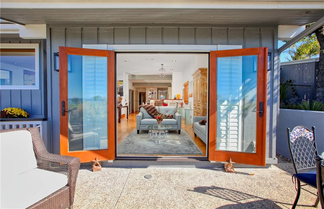 Enjoy ocean breezes and coastal views from this beautifully appointed Shell Beach home in the highly sought after Sunset Palisades neighborhood. This is a rare opportunity to own a thoughtfully designed 3-bedroom, 3-bath home situated on a spacious professionally landscaped corner lot that offers the utmost in privacy and comfort. With approximately 2,450 square feet of living space, this one-of-a-kind coastal residence delivers timeless charm and refined style throughout. From the moment you arrive, you will appreciate the timeless curb appeal of the classic Cape Cod style, mature landscaping and the welcoming front patio for soaking in the sunset vistas over the Pacific. The beautifully designed interior space features ocean views from the entryway, sitting room, dining room, kitchen, living room, and front primary bedroom. The home features three luxurious bedrooms, two of which are spacious and relaxing primary en-suites. The first primary suite offers stunning ocean views from the private deck with extensive built in shelving, dual vanity sinks, a cast concrete countertop with a lavish separate walk in shower and jetted bath. The second suite is secluded in the rear of the home with a cozy corner fireplace and opens to a charming private courtyard. The expansive main living room looks inward over the kitchen and dining room with a warm and inviting fireplace, wide-plank wood flooring, custom lighting with two large windows looking out to expansive ocean views. The gourmet kitchen is a chef and entertainers dream, with handcrafted maple cabinetry, quartz countertops, hi