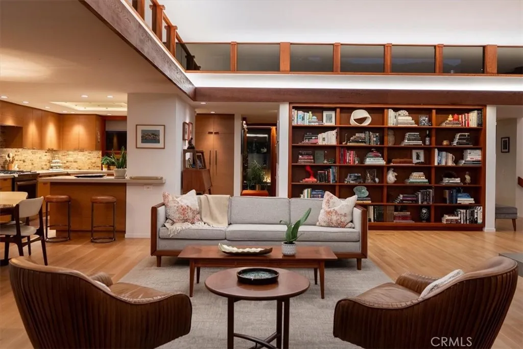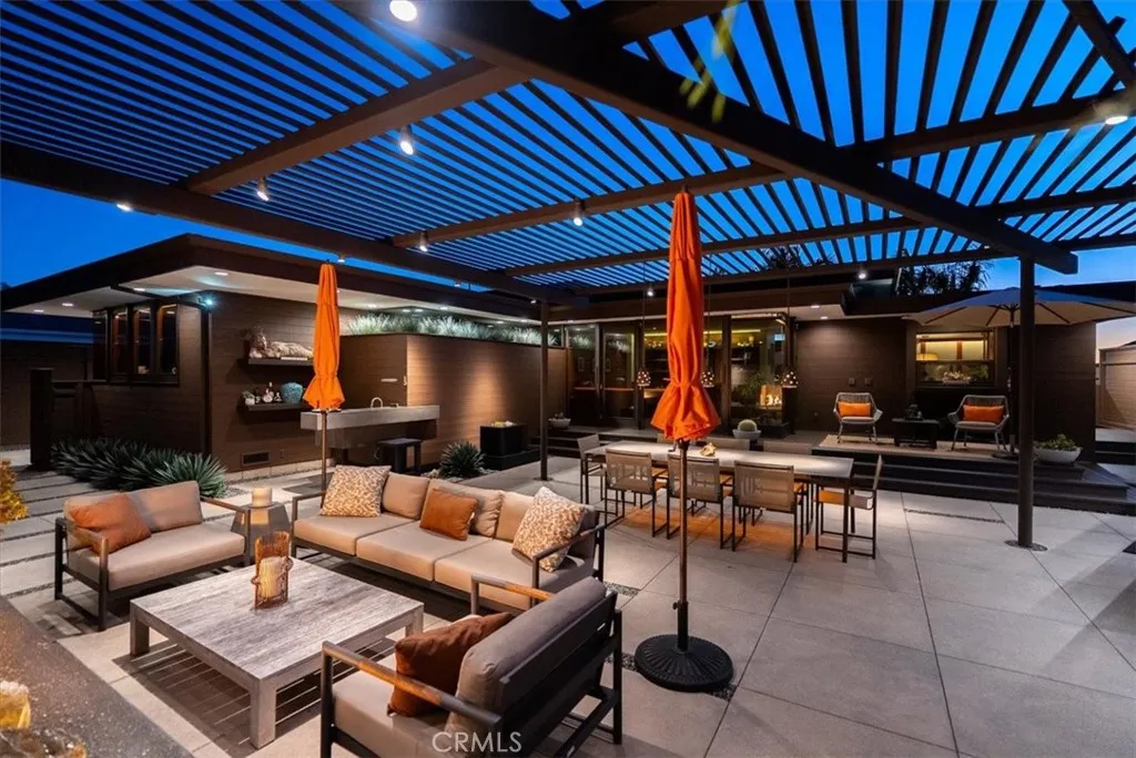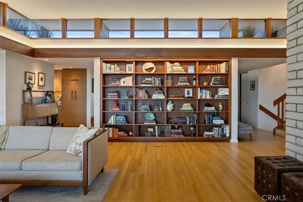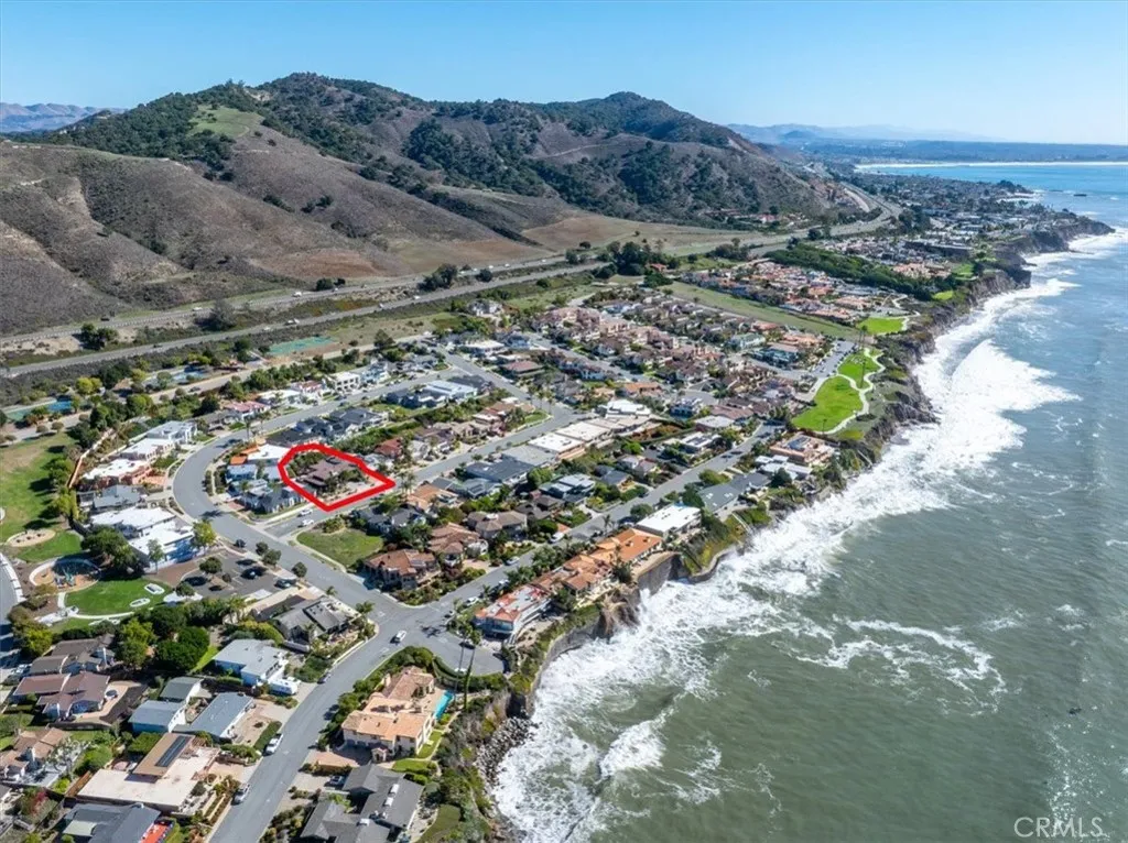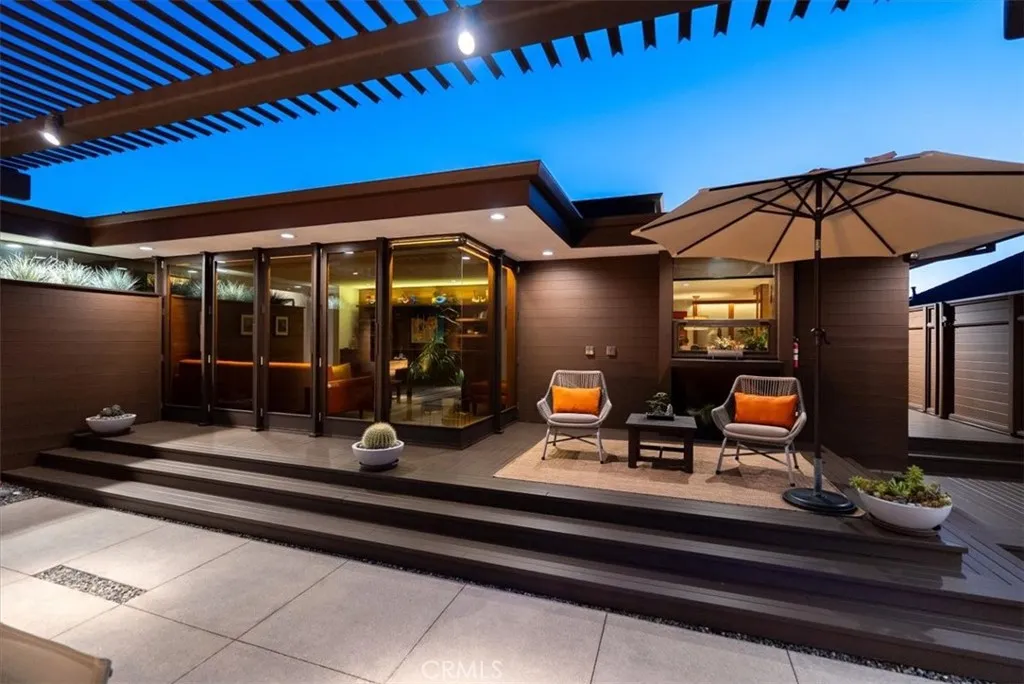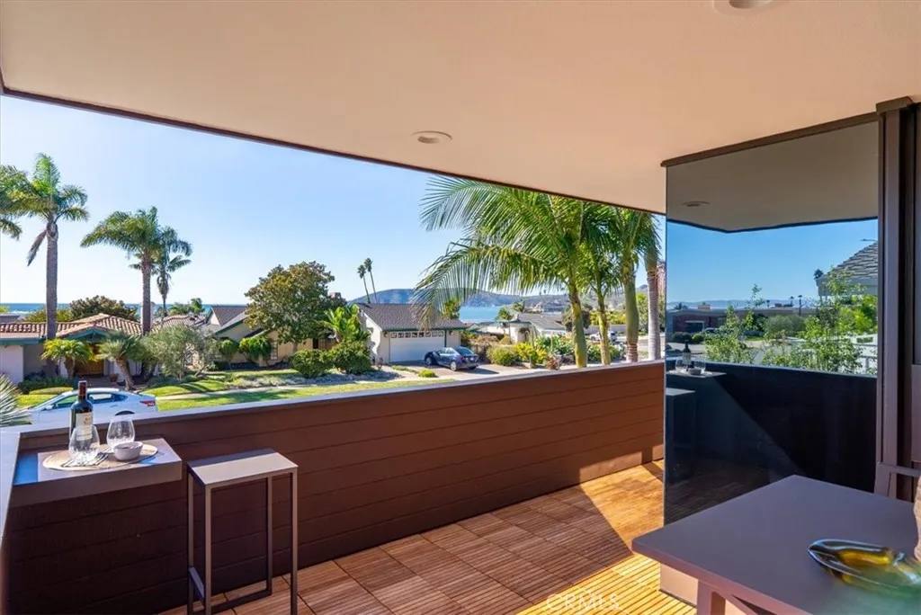 With sweeping ocean views, this masterfully curated Mid-Century Revival home in the coveted Sunset Palisades of Shell Beach, blends original architecture and elevated design. Thoughtfully renovated over the last decade, every element of this 3-bedroom, 2-bath residence has been curated for beauty, comfort, and lasting quality. Step through dramatic 12-foot double doors into a light-filled 2,245 sq ft interior where mid-century design meets sophistication with rift sawn white oak floors, custom grain-matched cabinetry, and clear-cut Cedar and Douglas Fir millwork. Original mitered glass windows frame the coastal horizon from the living space, dining area, and the outdoor terrace. In the living and den areas, bespoke TV lift cabinetry and walnut-veneered built-ins underscore the fusion of aesthetics and technology. The kitchen is a designers dream select white oak grain-matched cabinets, Bosch, JennAir, and Sub-Zero appliances, Wa-kei Waiko Japanese tile, Kessebhmer cabinetry systems, and a skylight with a custom 3form panel that floods the space with ambient light. The primary suite is a sanctuary of serenity showcasing a private balcony with beautiful ocean views, Caseta by Lutron lighting, floating cabinetry in the ensuite with a poured concrete countertop and Hansgrohe fixtures. The secondary suite and guest spaces continue the design language with walnut touches, honed limestone, and subtle under-cabinet lighting. The third bedroom, currently used as an office, features custom cabinetry with Rev-A-Lock file drawers and Formica doors. There is a seamless dialogue between