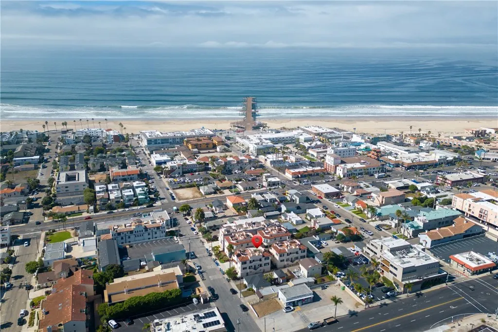 Stunning Mediterranean-style condo just two blocks from the sand, pier, and vibrant downtown dining and shopping. Offering the flexibility of full-time coastal living, a luxurious vacation retreat, or an income-producing investment, this property is currently being utilized as a licensed short term vacation rental. The 3-bedroom, 3.5-bath 1769 sq ft residence includes a private 1-bedroom, 1-bath Casita with kitchenette and separate entranceideal for guests or extended family stays. From the spacious 2-car garage, a private staircase leads to the main living level, while a separate staircase from the street provides additional access for convenience. Inside, wood floors flow throughout the open-concept living and dining areas, complemented by a chefs kitchen featuring quartz counters, stainless steel appliances, and high-end finishes. A powder room completes this level. Upstairs, the luxurious primary suite offers a serene sitting area and spa-like en-suite bath with dual vanities and a large walk-in shower. A second bedroom with full bath and a conveniently located laundry room complete this floor. The ground-level Casita offers flexibility with its own access from the garage and the private staircase. Crowning the home, an expansive rooftop deck captures panoramic ocean viewsperfect for entertaining or savoring spectacular sunsets. Combining elegant finishes with modern convenience, this property embodies the very best of upscale beachside living with exceptional income potential.