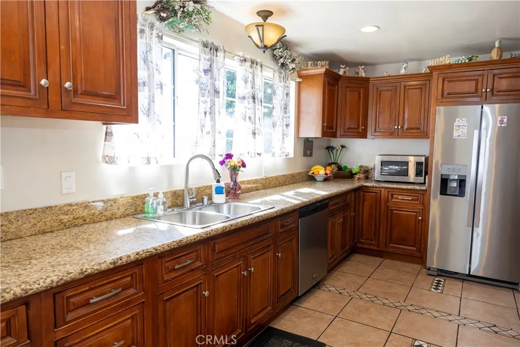 Charming single-story pool home in North Pomona, conveniently located near the 10, 57, and 71 freeways. This move-in ready home features a brand-new roof and an open-concept kitchen with recessed lighting, stainless steel appliances, updated cabinets, and granite countertops. The spacious living room includes a fireplace and sliding glass door leading to the backyard pool area, perfect for indoor-outdoor living. Both bathrooms are updated with tile finishes, and laminate wood flooring runs throughout the main living areas and bedrooms. Additional highlights include a formal dining room with ceiling fan and an attached two-car garage with automatic opener.