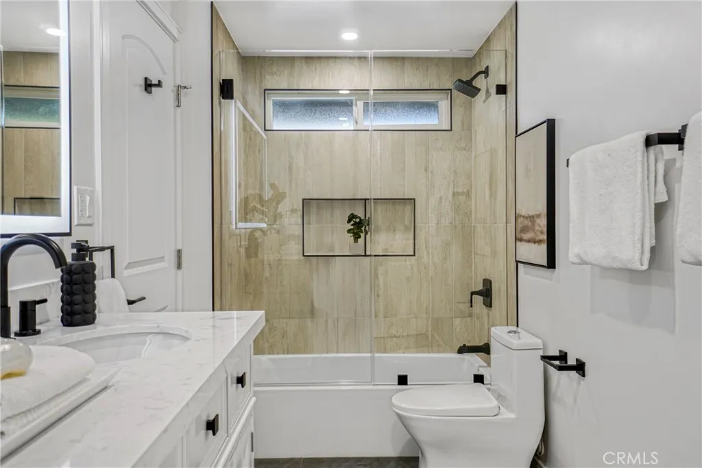 Modern Luxury Awaits A Stunning Single-Story Transformation! Step inside this jaw-dropping 4-bedroom, 3-bath modern masterpiecea home that has been completely reimagined from the ground up with high-end finishes, designer touches, and an effortless flow that defines contemporary living. From the moment you arrive, the grand double-door entry and open, sunlit floor plan will take your breath away. Natural light pours in through the skylight, highlighting the sleek new laminate floors, custom wood veneer accent panels with LED lighting, and a striking porcelain-tiled fireplace that sets the perfect tone for modern elegance. The state-of-the-art kitchen is pure perfection featuring all-new cabinetry, quartz countertops with waterfalls, brand new modern appliances and a full designer backsplash that ties it all together. Whether youre hosting a dinner party or enjoying a quiet breakfast, this kitchen is designed to impress.Every detail has been thoughtfully upgraded from the brand-new roof and electrical panel to new energy-efficient windows, doors, and lighting throughout. The homes spacious bedrooms offer plenty of storage, while the separate laundry room adds extra convenience.Step outside to your private backyard oasis, complete with new sprinklers, lush green grass, and a modern new gate. Its the perfect space for entertaining, barbecues, or simply soaking up the sunshine.This isnt just a remodel its a complete reinvention of what modern living should be. Sleek. Stylish. Move-in ready.