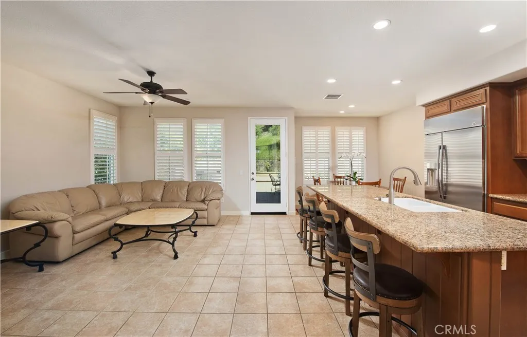Welcome to this beautifully updated 4-bedroom, 3-bathroom home located in the highly sought-after gated Sorrento Meadows Community of Porter Ranch. As you enter, youre greeted by soaring high ceilings and an abundance of natural light, creating a bright and inviting atmosphere. The spacious kitchen boasts a large center island that opens seamlessly to the family room and breakfast nookperfect for entertaining and everyday living. This thoughtfully designed floor plan features a convenient downstairs bedroom and full bath, ideal for guests or a home office. Upstairs, youll find newly installed flooring, a laundry room for added convenience, and generously sized bedroomsall with walk-in closets. The primary suite is a true retreat, offering a spa-like bathroom with soaking tub, separate shower, and dual vanities. Additional highlights include a 3-car tandem garage, brand-new toilets throughout, and a large backyard with a built in counter with sink and BBQ offering endless possibilities for outdoor enjoyment. Located within the award-winning Porter Ranch school district and just minutes from shopping, dining, and easy freeway access, this home perfectly blends comfort, style, and convenience.