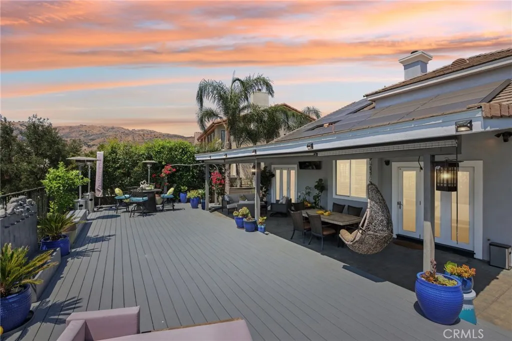 Back On The Market!!! Stunning newly remodeled View home located in the Prestigious Guard-Gated Community In Porter Ranch THE HEIGHTS. The true meaning of elegance in every corner of this home with designer finishes. Featuring 4 bedrooms and 3 beautifully remodeled baths, living room with fireplace & soaring high ceilings opens to the formal dining area, cozy family room with second fireplace opens to the one of a kind custom chef's kitchen with center island, quartz counters and stainless steel appliances. The primary bedroom offers a walk-in closet and en-suite primary bathroom with dual sink, soaking tub & separate shower. Walk outside to the entertainers back yard offering beautiful views, covered patio with multiple ceiling fans and heaters, relax in the jacuzzi after a long day at work, built-in BBQ, pizza oven and a sauna are just some of the highlights of this beautiful back yard. Additional features include dual pane windows, solar, three car attached garage with direct access. The 24/7 guard gated community features resort style amenities including olympic size pool, spas, tennis courts and playgrounds for kids. Just minutes to the newly opened Porter Ranch community park, the Vineyards at Porter Ranch featuring premier shopping, dining and so much more.
