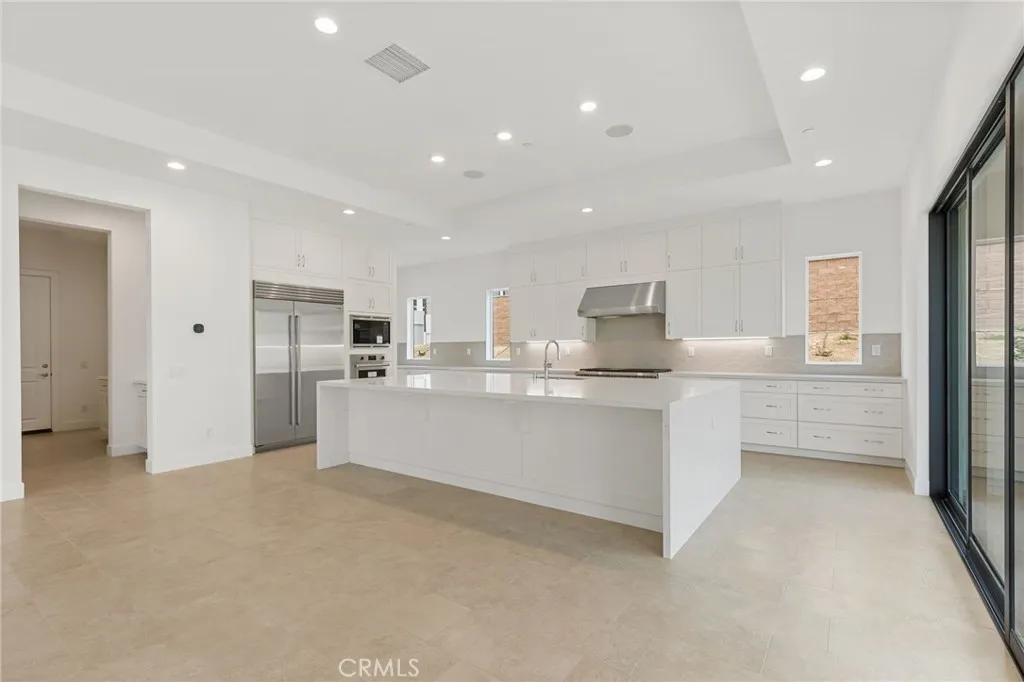 Welcome to The Ridge at Bella Vista, the final community within the prestigious Porter Ranch master plan. If you have been waiting for a rare single-story equestrian homesite offering exceptional land, privacy, and spaceyour search ends here. The Ridge is now down to its final seven one-story homes, making this a truly limited opportunity. The Saddleback floor plan is the largest single-story design available, thoughtfully crafted with expansive living areas, a flex space, and a formal dining room. A welcoming covered entry and elegant foyer lead past the dining room into a stunning great room and casual dining area, highlighted by 11-foot coffered ceilings and breathtaking views of the luxury outdoor living space. 20 x 8 multi-stacked doors open to a vast backyard showcasing rustic canyon vistas and natural surroundings. The gourmet kitchen is designed for both entertaining and everyday living, featuring a large center island with breakfast bar, abundant counter and cabinet space, and a spacious walk-in pantry. Designer upgraded craftsman style Alabaster cabinets throughout the home. The great room is anchored by a striking 72-inch linear gas fireplace, creating a warm and inviting atmosphere. The private primary bedroom suite offers a true retreat, complete with a coffered ceiling, 12 x 8 stacking doors opening to the backyard, an oversized walk-in closet, and a spa-inspired bath. The luxurious primary bath includes a ceiling-mounted shower head, dual-sink vanity, soaking tub, expansive shower with seating, and a private water closet. Secondary bedrooms are generously siz