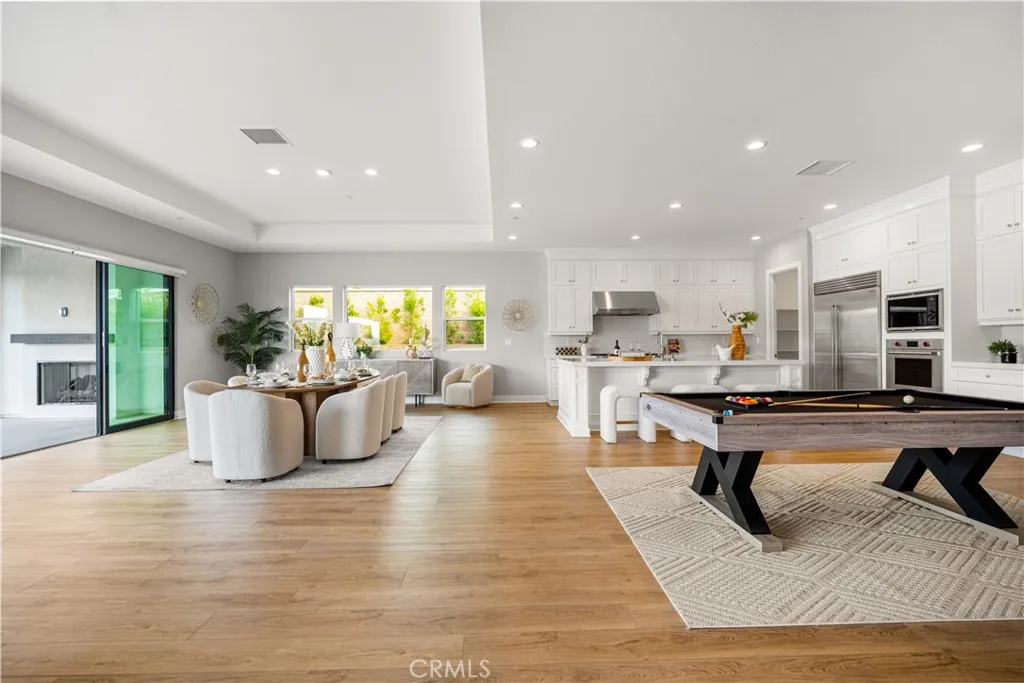 Must See! As most mountain-view homes in this community are already sold out, this is a rare opportunity to own a residence with unobstructed canyon and mountain views. Move-in ready single-story home, set on a rare nearly 20,000 sq.ft. flat lot within the guard-gated Bella Vista community in Porter Ranch. This 4-bedroom, 4.5-bath home offers 4,107 sq.ft. of thoughtfully designed living space, balancing comfort, functionality, and natural scenery. Every bedroom is en-suite, providing privacy and flexibility for family and guests alike. The open-concept great room flows seamlessly into the dining area and gourmet kitchen, finished with wide-plank wood flooring, while the carpeted bedrooms add warmth and comfort. A flexible bonus space can easily serve as a home office, gym, or studio. Large multi-panel sliding doors open the living area to the backyard and covered patio with a built-in fireplace, creating a smooth indoor-outdoor transition ideal for everyday living and entertaining. The primary suite enjoys direct backyard access and serene mountain and canyon views. Both the front and backyard have already been professionally hardscaped, allowing for true move-in readiness without additional post-closing projects. Fully paid solar further enhances energy efficiency and long-term value. Access to top-rated public schools and proximity to Sierra Canyon School.One of the most compelling single-story mountain-view offerings currently available in Porter Ranch.