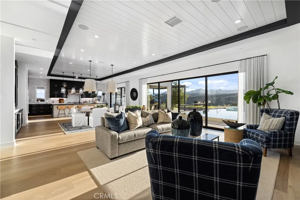 Welcome to 12401 Ridge Line, Luxury Single Story Home located in the prestigious and gated community of Porter Ranch! This former Toll Brothers model home offers the pinnacle of luxury living with unobstructed canyon views on a stunning lot, making it a true standout in the neighborhood. Enjoy one of the best and exclusive sunset views from the comfort of your own backyard, where you'll find a sparkling pool & spa, mountain views, BBQ area, and meticulously designed landscaping that exudes elegance. The sale of this home includes all the furniture, adding an extra layer of convenience and value! Step inside to discover the chef's kitchen featuring stainless steel appliances and a spacious walk-in pantry.Every corner of this home showcases upgraded finishes and impeccable detail, ensuring an unforgettable experience for both residents and guests. With ample living areas, this home offers functional office spaces, stunning hard flooring, and aesthetically pleasing bathrooms throughout. The master bath is a true sanctuary, boasting a soaking tub, an exquisitely designed and well lit walk-in closet, and a spacious glass standing shower. Additionally, the outdoor area of the master suite features a relaxing outdoor soaking tub in a privately closed area, adding a touch of tranquility to enjoy nature. Indulge in a lifestyle of opulence with scenic walking trails, breathtaking views, and an abundance of space.The backyard is highlighted by a captivating fireplace, epitomizing the quintessential California luxury lifestyle that dreams are made of. Take the first step towards your d