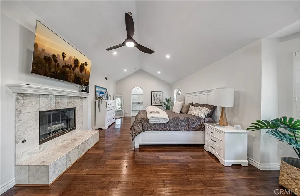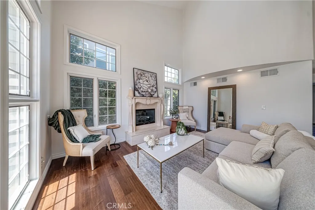 Rare opportunity to own a stunning Modern Traditional estate behind the prestigious Ridgegate community, highlighted by a sprawling, grand driveway that offers exceptional presence, ample parking, and striking curb appeal. This 4,583 sq ft home features 5 bedrooms, 7 bathrooms, lush landscaping, and fully paid-off solar panels (10 kWh system with 25 panels). Blending timeless architectural charm with contemporary luxury, this light-filled residence showcases a striking exterior with detailed stonework, elegant gray siding, and a distinctive honeycomb-patterned driveway that makes a lasting first impression. Step through ornate double doors into a dramatic two-story foyer, complete with a sweeping spiral staircase. The formal living room impresses with vaulted ceilings, floor-to-ceiling windows, and a stately fireplace, creating an airy, gallery-like ambiance. Wood flooring, neutral tile, and new recessed lighting flow throughout the home. The gourmet kitchen is a chefs dream, featuring white cabinetry, quartz countertops, a large island, and premium stainless steel appliances, including a KitchenAid package and a built-in Sub-Zero refrigerator. The dishwasher and cooktop are brand new, complemented by a gas oven and microwave. An open-concept family room offers rich hardwood floors, a marble-accented fireplace, and French doors that open to the backyard. The spacious dining area, adorned with a modern chandelier and plantation shutters, provides an elegant setting for entertaining. The main level includes a bedroom with an ensuite bath, a separate laundry room with gas and