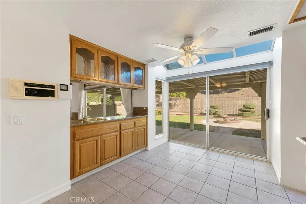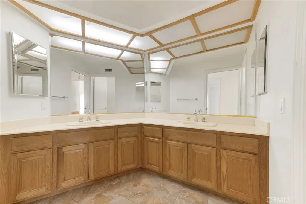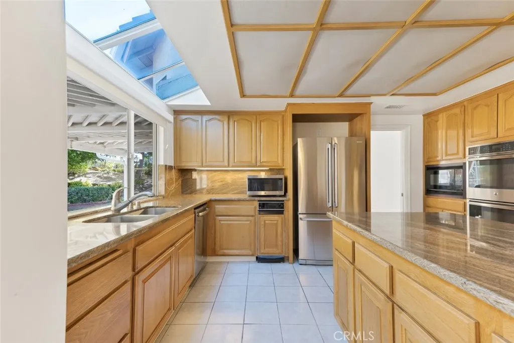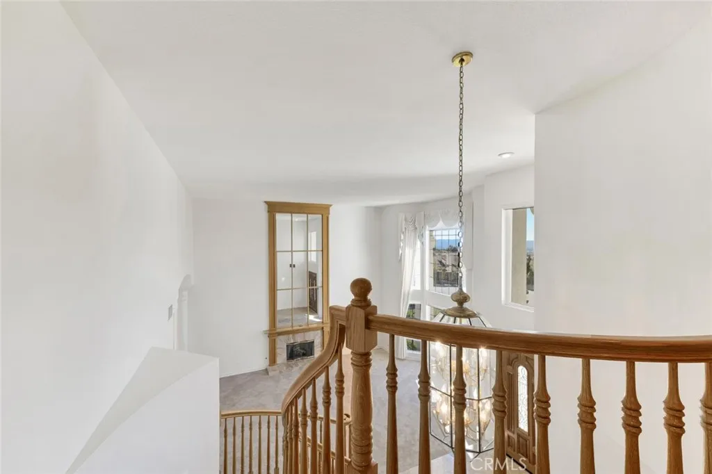 Experience refined living in this elegant 4 bed, 3.5 bath, nearly 4,000 sqft residence in the prestigious 24-hour guard-gated Porter Ranch Estates. Set on desirable corner lot with stately curb appeal, the home offers 3-car garage, brick-accented drive and walkways, and a charming covered front porch framed by classic columns. Inside, fresh paint and brand-new carpet enhance the light-filled interior, where a formal tile entry opens to a dramatic step-down living room with soaring two-story ceilings, an impressive bay window that floods the space with natural light, and a striking fireplace that anchors the room. The open floor plan flows gracefully through flanking columns into the formal dining room with decorative coffered ceiling and double-height windows overlooking the private yard. The spacious kitchen blends style and function with wood cabinetry, stone countertops, a large center island, and built-in appliances including double ovens, plus a sunny breakfast nook with glass sliders leading to the back patio. The adjacent family room creates a relaxing space for fun and entertainment with crown molding, rich wood wainscotting, custom built-ins, and a beautiful stone fireplace. A well-appointed downstairs bedroom with en-suite bath provides ideal guest or in-law accommodations, while the convenient laundry room with utility sink and direct garage access adds practicality. Upstairs, the luxurious primary suite boasts a vaulted ceiling, double-door entry, cozy fireplace, private balcony, dual closets, and a spa-like en-suite bath with skylight, dual vanities, jetted soa