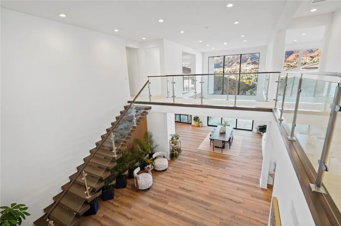 Welcome to 20133 Galway Lane an elegant luxury residence tucked away in the exclusive guard-gated community of Porter Ranch. This stunning home spans approximately 5,196 sq ft of refined living space on a generous 18,000 sq ft lot, blending sophistication, comfort, and modern design in perfect harmony. Step through the grand double doors into a bright, open-concept floor plan featuring high ceilings, custom finishes, and abundant natural light throughout. The formal living and dining rooms flow seamlessly, creating an ideal setting for both intimate gatherings and large-scale entertaining. The gourmet chefs kitchen is a true showpiece equipped with premium stainless-steel appliances, an oversized center island, elegant cabinetry, and a spacious breakfast nook overlooking the lush backyard. The adjoining family room features a cozy fireplace and wall of glass doors that open to the outdoor oasis. Upstairs, the primary suite offers a private retreat with breathtaking city and mountain views, a luxurious spa-like bathroom with soaking tub, dual vanities, and a grand walk-in closet. Each additional bedroom is generously sized and beautifully designed with en-suite access.Located within the highly sought-after Porter Ranch Community School district and just minutes from The Vineyards shopping center, fine dining, and easy freeway access, this home combines luxury living with everyday convenience. Experience the best of Porter Ranch where elegance meets comfort at every turn.