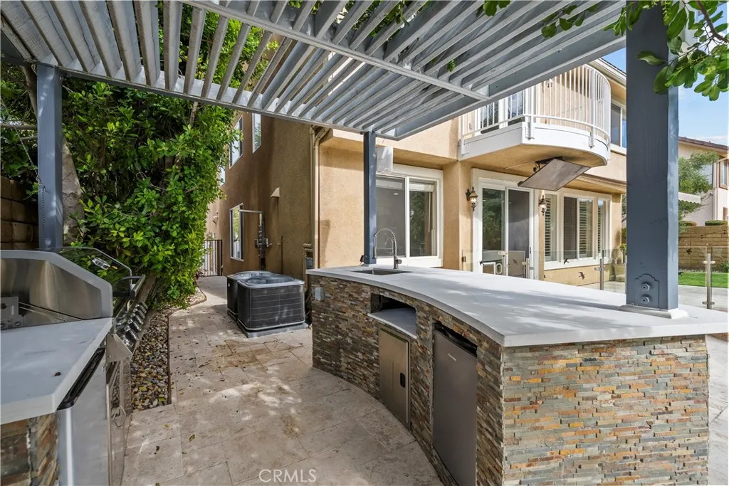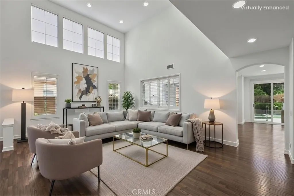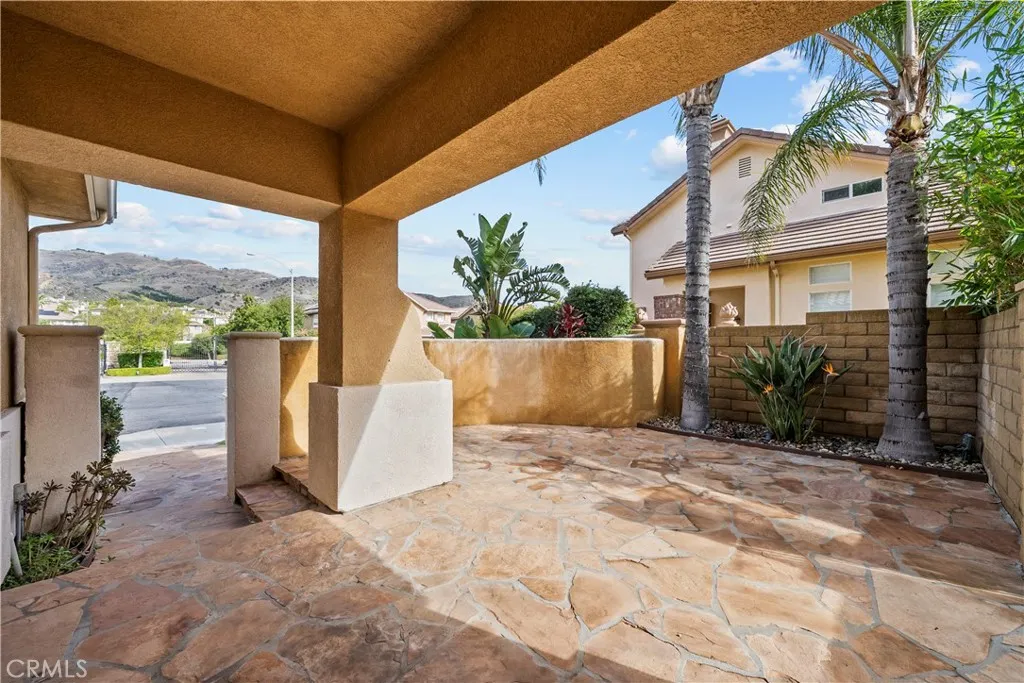 Welcome to this updated 4-bedroom, 3.5-bath pool home located in one of Porter Ranchs most desirable gated communities, Villagio. This beautifully updated residence combines luxury, comfort, and timeless style. The elegant double-door entry welcomes you with a stone walkway and charming front courtyard. Inside, youll find rich wood-like flooring, plantation shutters, and freshly neutral colored paint throughout. The formal living room offers a dramatic two-story ceiling with abundant natural light pouring through large windows. The gourmet kitchen features quartz countertops & island, white cabinetry, glass tile backsplash with pot filler, stainless steel appliances, walk-in pantry, and breakfast nook. The inviting family room showcases newer carpet, a cozy upgraded fireplace with marble surround, and white open cabinetry. Upstairs includes Jack and Jill bedrooms with an updated bathroom, an en suite bedroom, and a versatile office or optional 5th bedroom with french doors. The luxurious primary suite features dual walk-in closets, dual sinks, a fully remodeled bathroom, and french doors leading to a private balcony with beautiful mountain views. Offering approximately 3,117 sq. ft. of living space on a prime 7,331 sq. ft. lot with a 3-car garage. Nearly $200,000 in upgrades include a complete backyard redesign and landscaping, solar panels and pool solar system, electric vehicle charger, new garage door, cabinets, and flooring, remodeled bathrooms, new laundry room flooring, new stair banister, under-stair storage, attic build-out, retractable shade covers for windows and