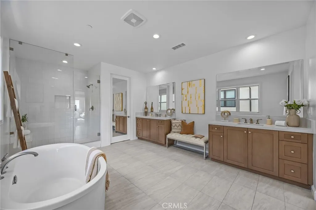 Perched in the highly desirable guard-gated community of Westcliffe at Porter Ranch, this elegant residence captures the perfect balance of modern luxury and timeless design. Enjoy sweeping mountain and city lights views that create a breathtaking backdrop from multiple rooms throughout the home. The grand dual staircase in the foyer sets an impressive tone, while soaring ceilings and expansive windows fill the interiors with natural light. Open-concept living and dining areas flow seamlessly into the gourmet kitchen, featuring premium stainless-steel appliances, a large center island, and a walk-in pantryideal for both everyday living and entertaining. Upstairs, the primary suite is a serene retreat offering stunning panoramic vistas, a spa-inspired bathroom with soaking tub and separate shower, and an oversized walk-in closet. Each secondary bedroom includes its own en-suite bath, providing comfort and privacy for family and guests alike. A versatile loft and multiple gathering areas offer flexibility for work, play, or relaxation. Step outside to enjoy peaceful evenings surrounded by city lights and mountain silhouettesa perfect setting to unwind and take in the beauty of Porter Ranch living.