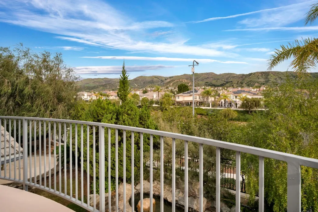 Set within the prestigious, gated Villagio Estates in Porter Ranch, this beautifully maintained two-story 4 bed, 4 bath + den residence offers an exceptional blend of refined living, thoughtful updates, and the security and exclusivity of a controlled-access community. Spanning approximately 3,300 square feet, the home reflects a high level of care and pride of ownership, with attractive architecture, stacked stone accents, and a welcoming formal entry that immediately conveys quality and sophistication. Step into soaring two-story ceilings, abundant natural light from clerestory windows, and striking new lighting fixtures that highlights the openness of the formal living/dining space. Fresh paint, new flooring throughout the house, newly remodeled kitchen, new bathroom fittings, lighting fixtures, door hardware, kitchen appliances and so much more! The homes thoughtful upgrades and high-end finishes reflect meticulous care and pride of ownership throughout. French doors open to a private office or den with a plantation shuttered passthrough to the adjacent family room, which could be converted to act as an additional bedroom if desired. The inviting informal living space has a cozy, raised-hearth fireplace and seamlessly flows into the stunning kitchen. Beautifully appointed with two tone shaker cabinets, white quartz countertops, marble backsplash, brand-new stainless-steel appliances, and convenient central island. The adjoining, sunny breakfast nook has both breakfast bar seating and room for informal dining surrounded by windows. Upstairs, the generous bedroom layout i