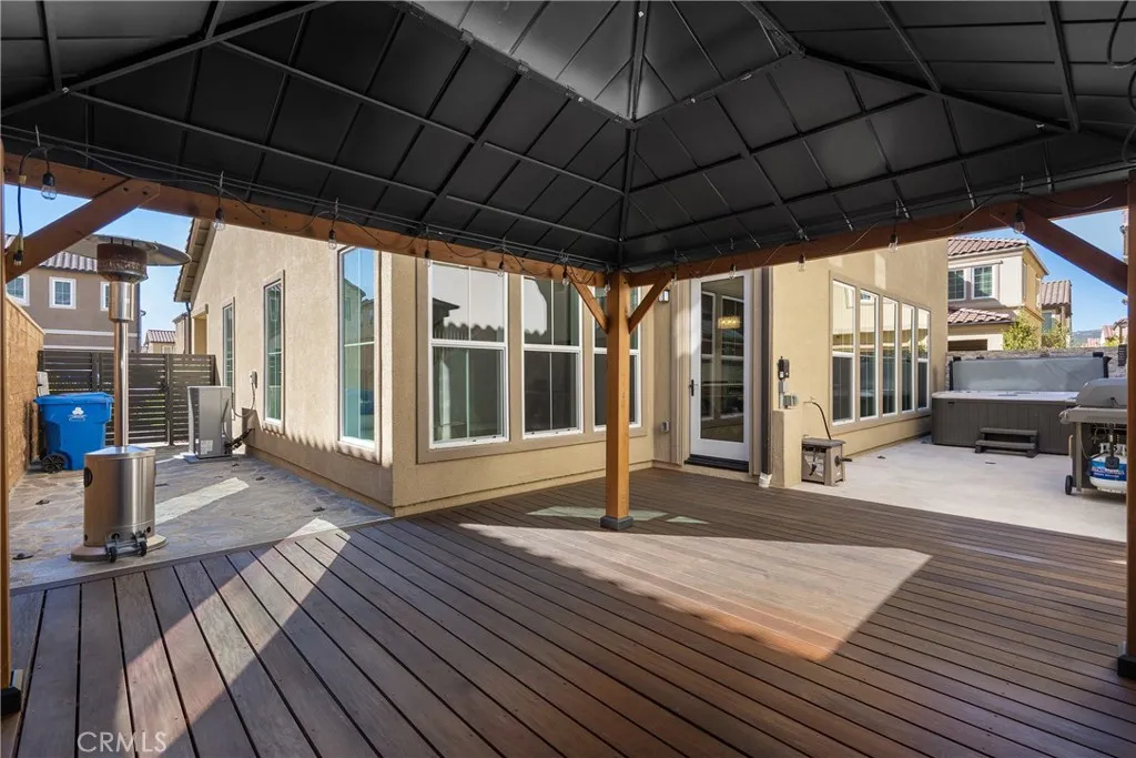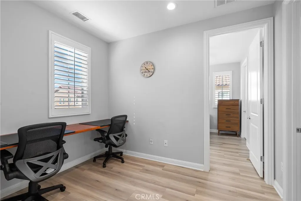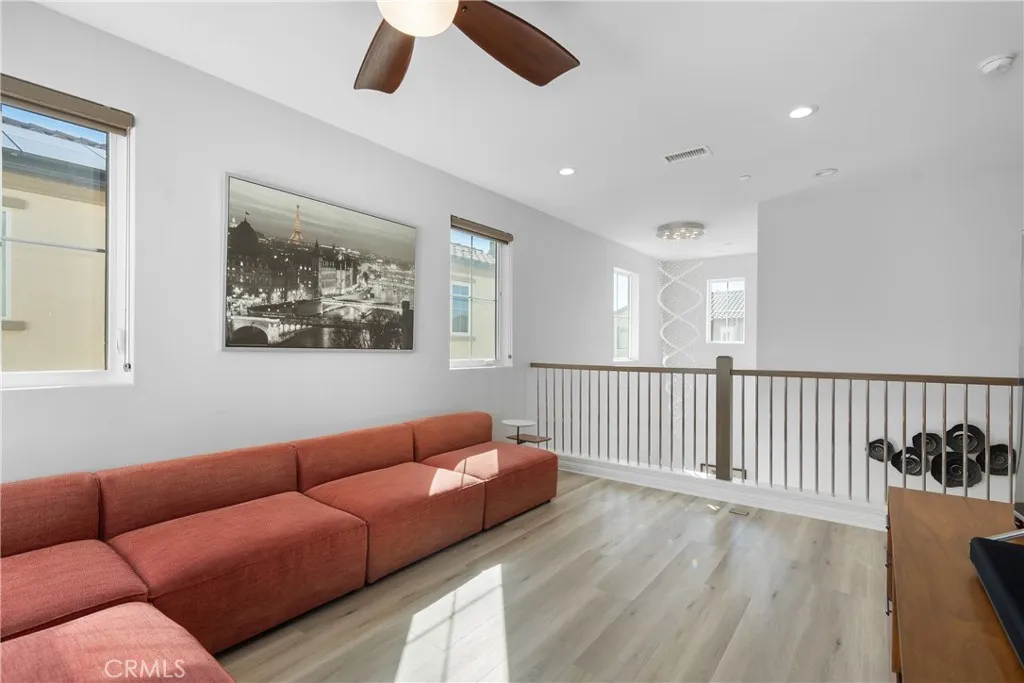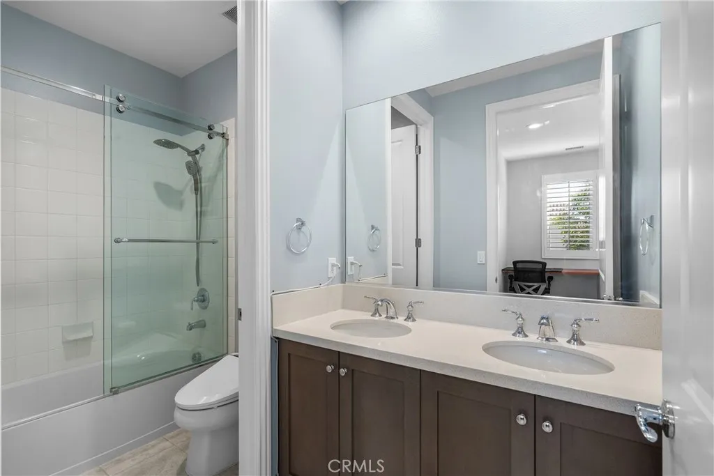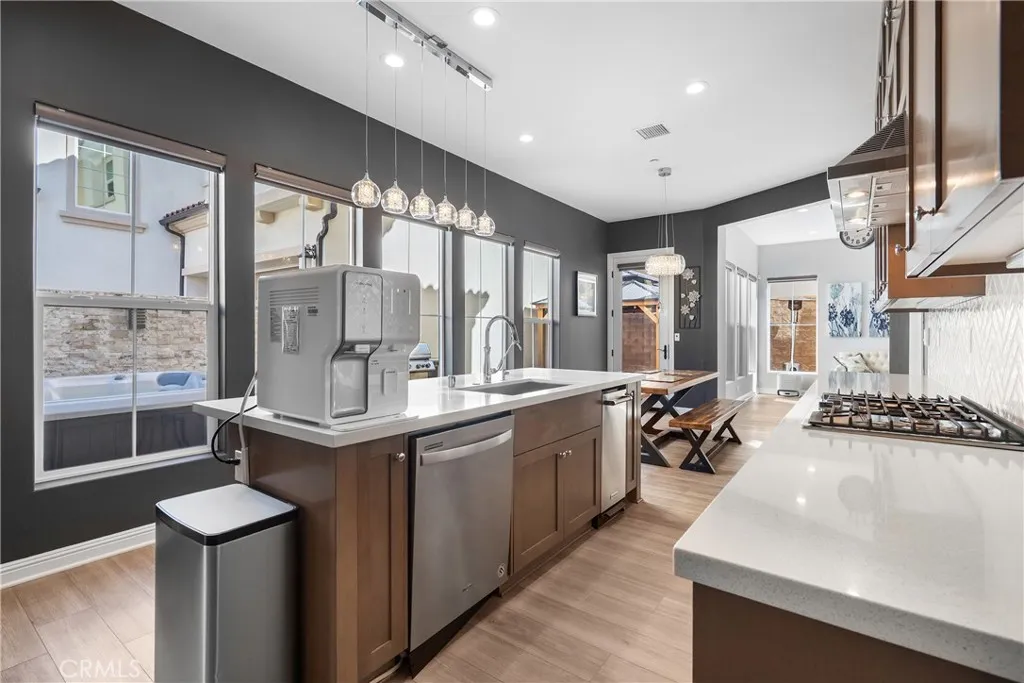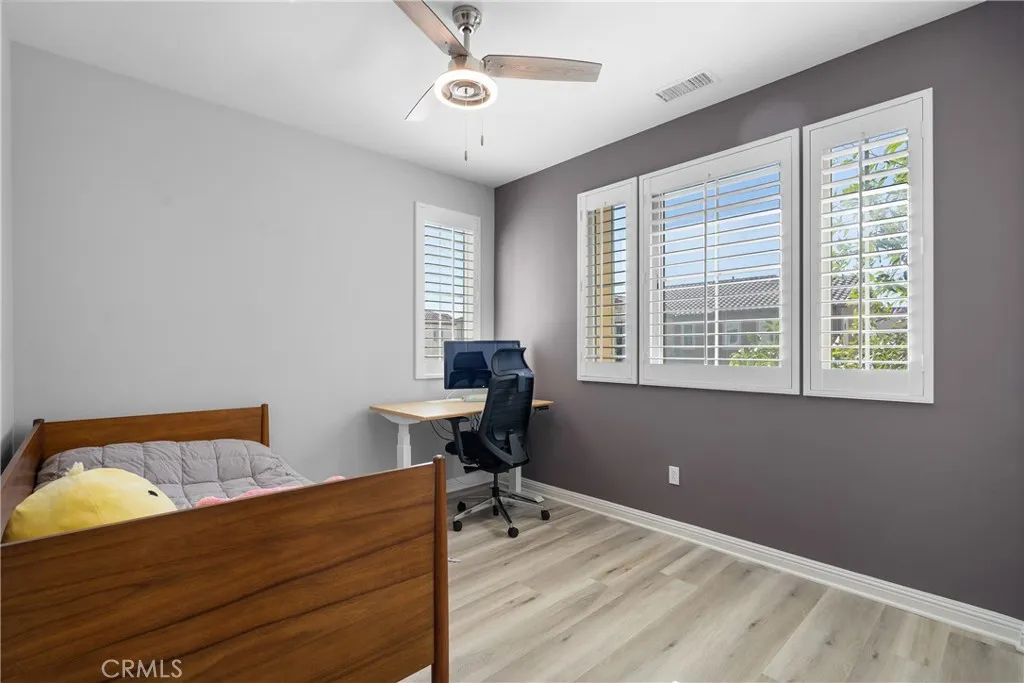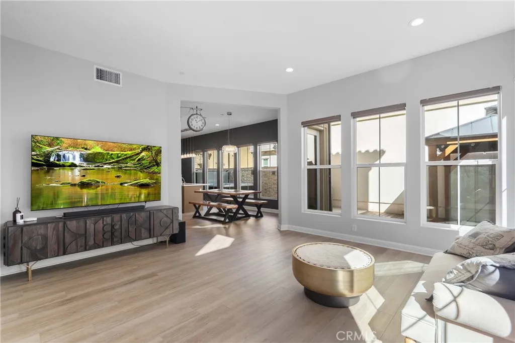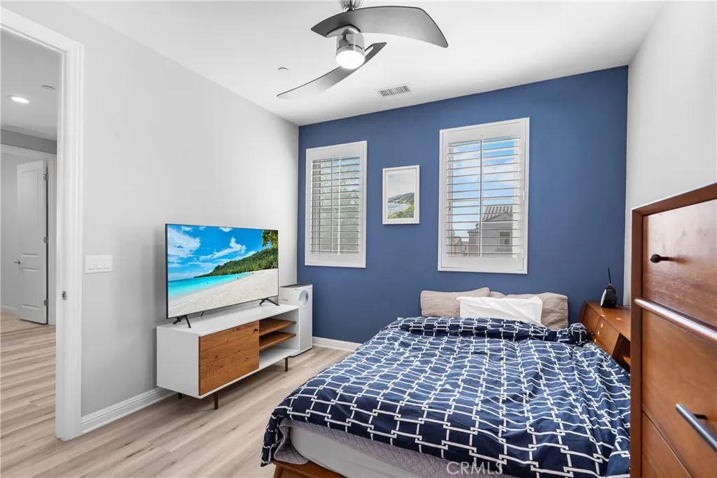 Welcome to the prestigious and fully secured Canyons at Porter Ranch, an exclusive gated community offering 24-hour security and showcasing sophisticated contemporary architecture. This exquisite single-family residence presents an impressive 2,266 square feet of thoughtfully designed living space, featuring four bedrooms, three bathrooms, and a versatile loft. The charming Yellowstone facade greets you with an inviting porch that leads to an elegant foyer, highlighted by a stunning, oversized chandelier. Step into the bright and expansive open-concept great room, seamlessly connected to the formal dining area and a beautifully appointed chefs kitchen. The kitchen is equipped with luxurious quartz countertops, an expansive center island, floor-to-ceiling custom cabinetry, a walk-in pantry, premium stainless steel appliances, and a spacious breakfast barideal for both daily living and stylish entertaining. Soaring high ceilings and modern recessed lighting enhance the airy atmosphere, while abundant natural light floods the living areas. For added convenience and privacy, automatic blinds are installed throughout. The serene and sunlit master suite serves as a private retreat, featuring large windows, a generous walk-in closet, and a lavish master bath complete with a dual-sink vanity, a sleek glass-enclosed shower, and a separate soaking tub. Upstairs, a conveniently located laundry room, two additional guest bedrooms, and a well-appointed hall bathroom provide comfort and functionality. A highly desirable first-floor bedroom with a full bathroomperfect for guests or as a p
